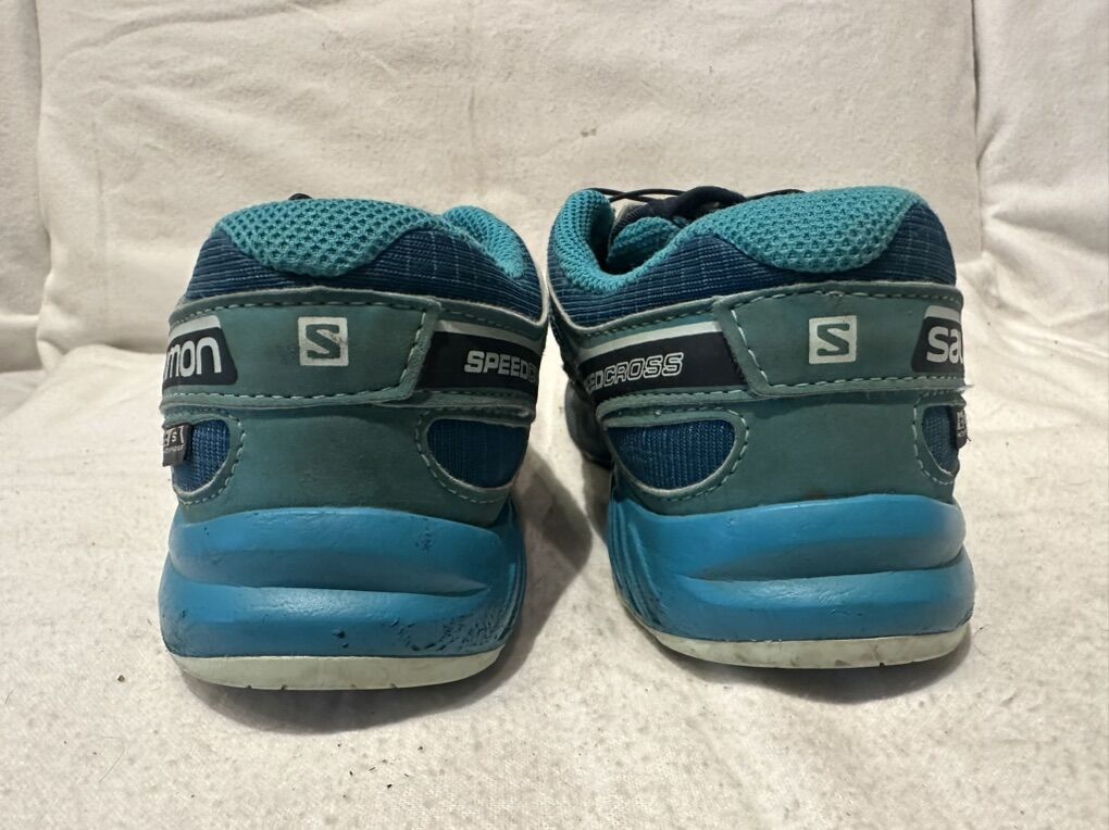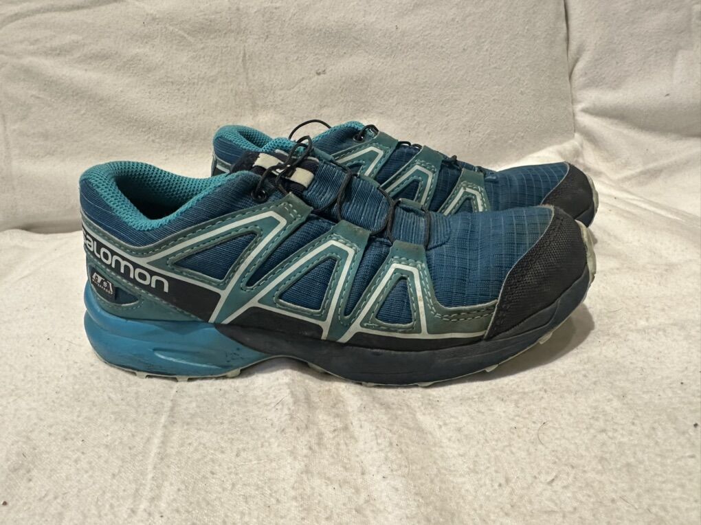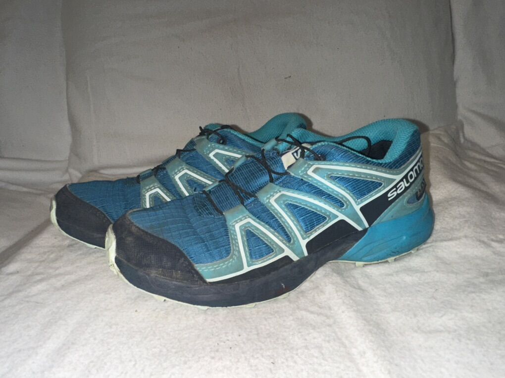 Salomon speed, cross youth size 2 teal waterproof, corded trail shoes. These are in good condition, see photos for details. I take cash or Venmo, but cash is preferred. Text is best. 801-201-4446. Check out my other ads for additional sizes and styles.