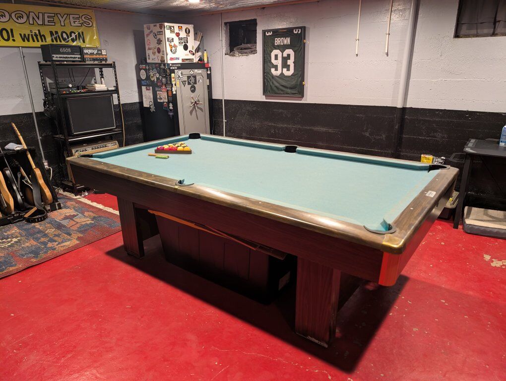 VenmoAwesome vintage Brunswick pool table. I believe it is a 3 piece slate. One corner is broken, rubber replacements are available. Would need to be professionally moved due to space constraints in my basement.
