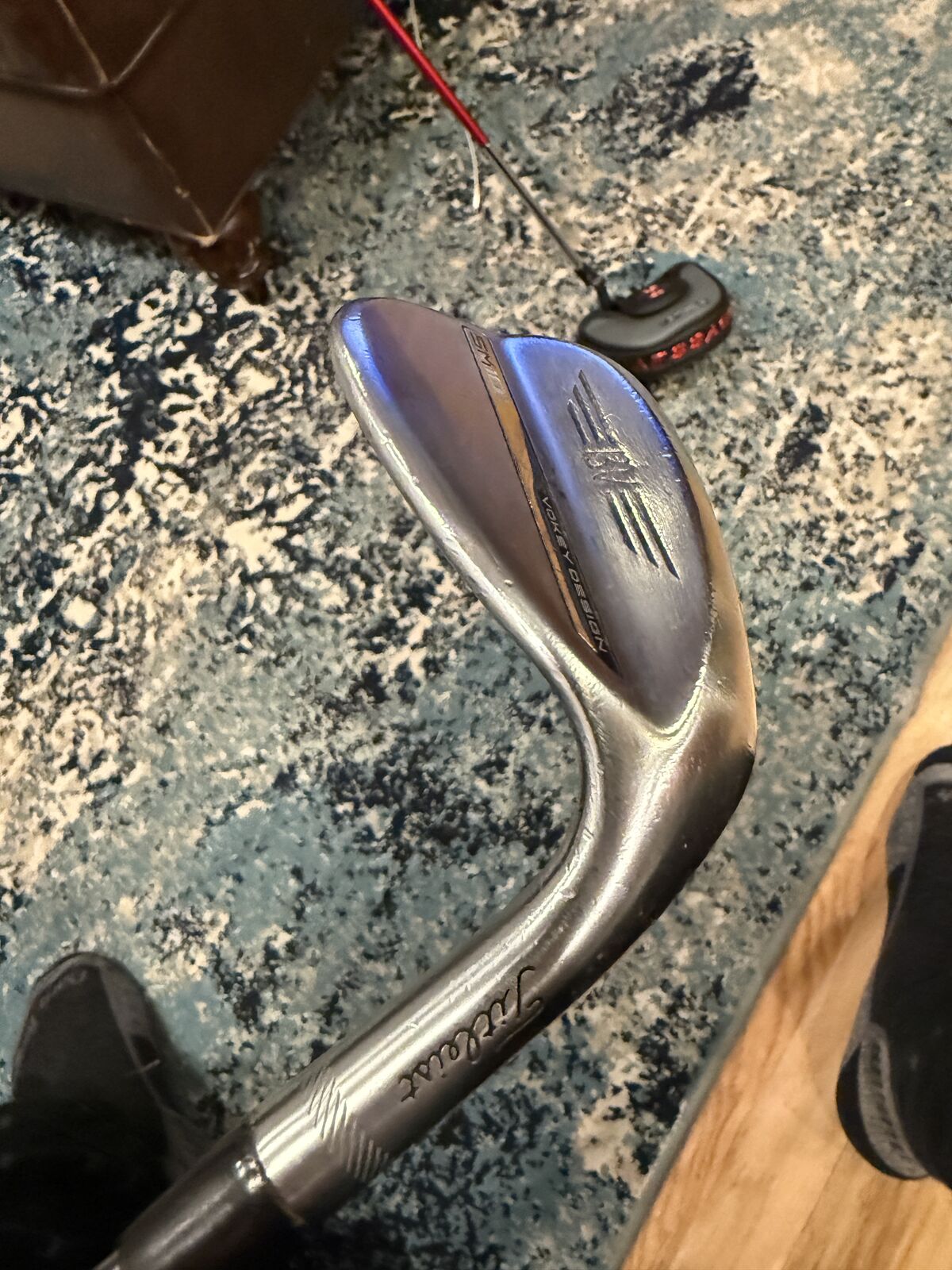 VenmoSelling a used Titleist Vokey SM10 54 degree wedge with 10.5 degrees of bounce. KBS Tour Hi Rev shaft at 1.5" longer than stock. That shaft was ordered from Vokey that way so it is not plugged. Jumbo CB Tour grip. Wedge is in great shape but it is used. Would still be in play but I chose to go with a different grind. If you want a stock shaft I have one and will swap it out for you. It will be brand new with a stock Vokey grip, standard tsize. Can also be bent flatter and will do that for you as well if you want a stock configuration.
