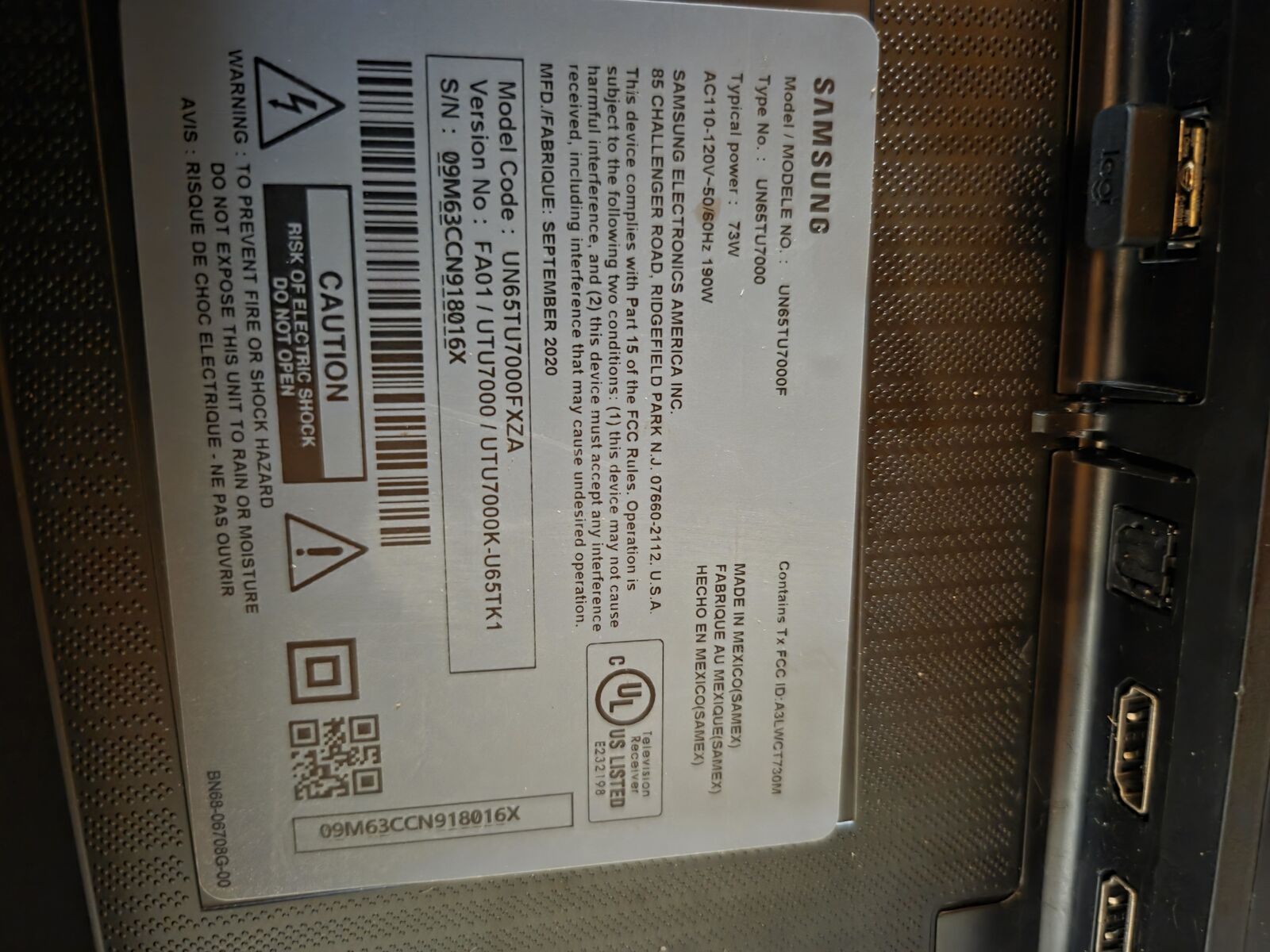 SAMSUNG 65" Class 4K Crystal UHD (2160P) LED Smart TV with HDR UN65TU7000 2020
