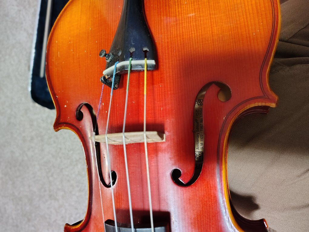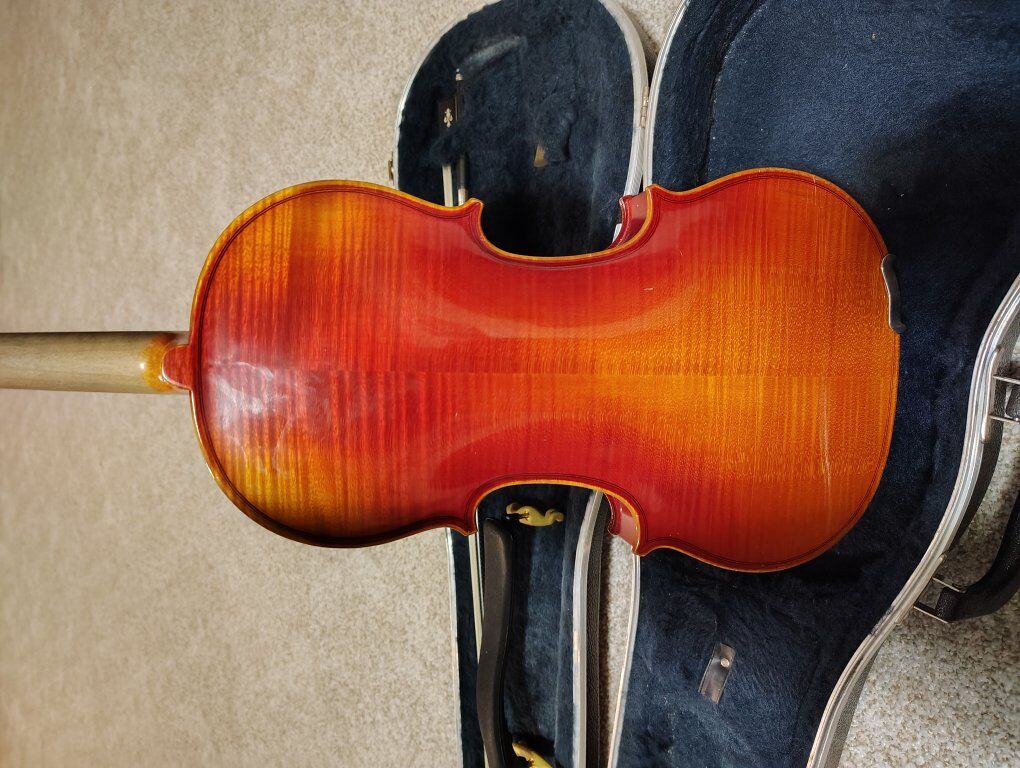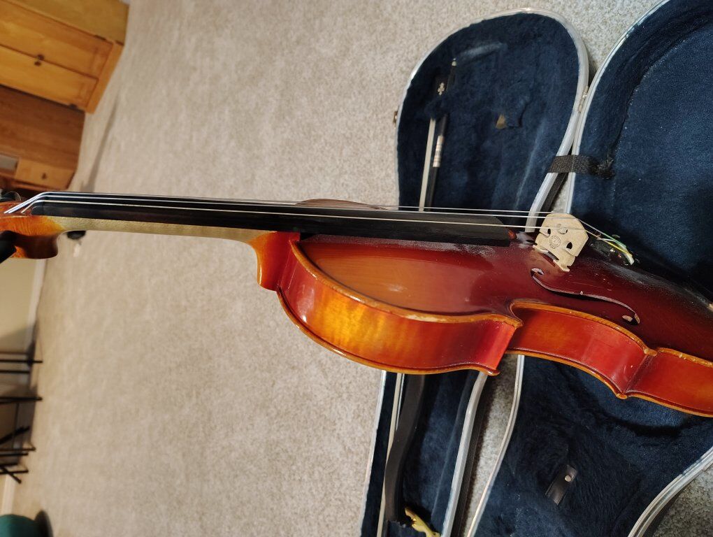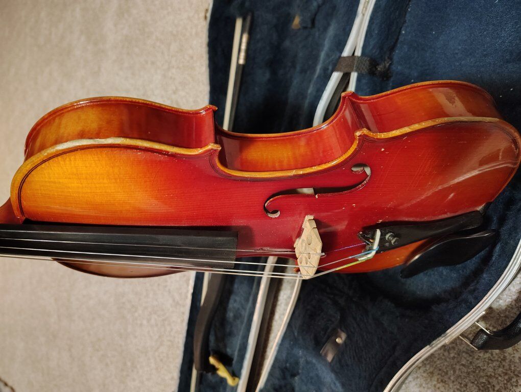 VenmoBeautiful vintage student violin. I believe it was made in 1987. Solid wood top, tail piece, and chin rest. there is some wear in the borders and some varnish chips on the face. Comes with shoulder rest carbon fiber bow and hard shell case..