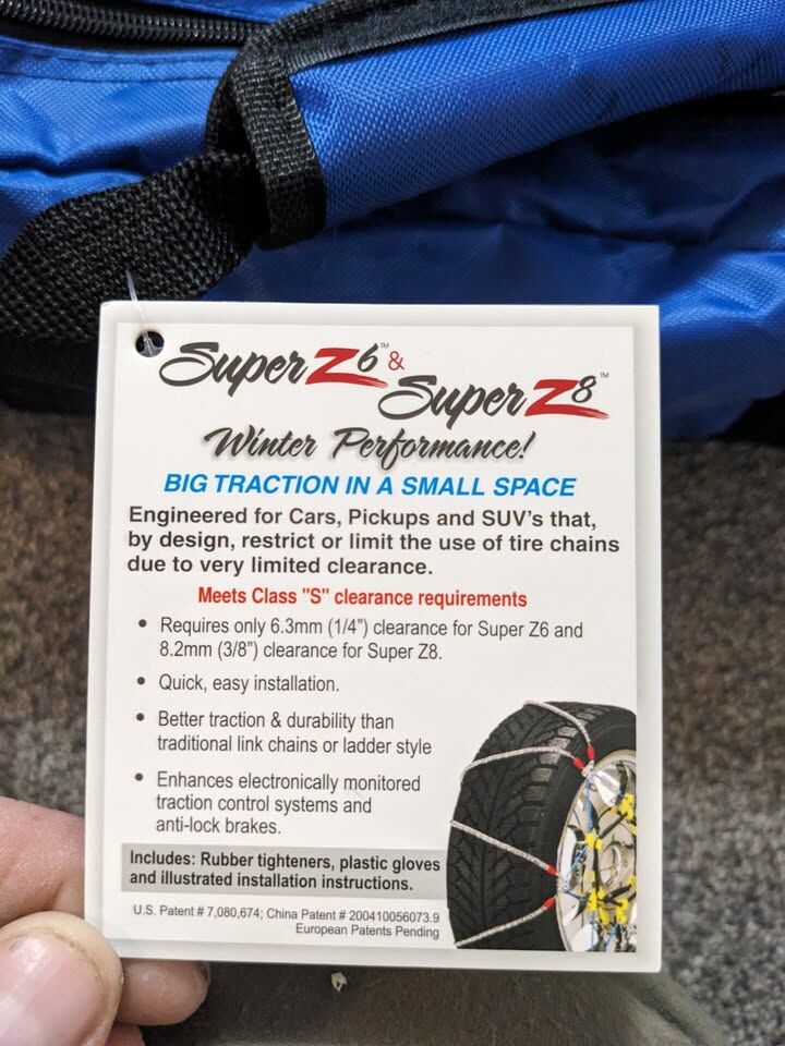 PayPalBrand new, never used. The exact model is Peerless SZ131 Super Z-6. See the screenshot I attached to determine if they will fit your car's tires. Also, here is a link to the manufacturers product page: https://peerlesschain.com/passenger-tire-chain/super-z6