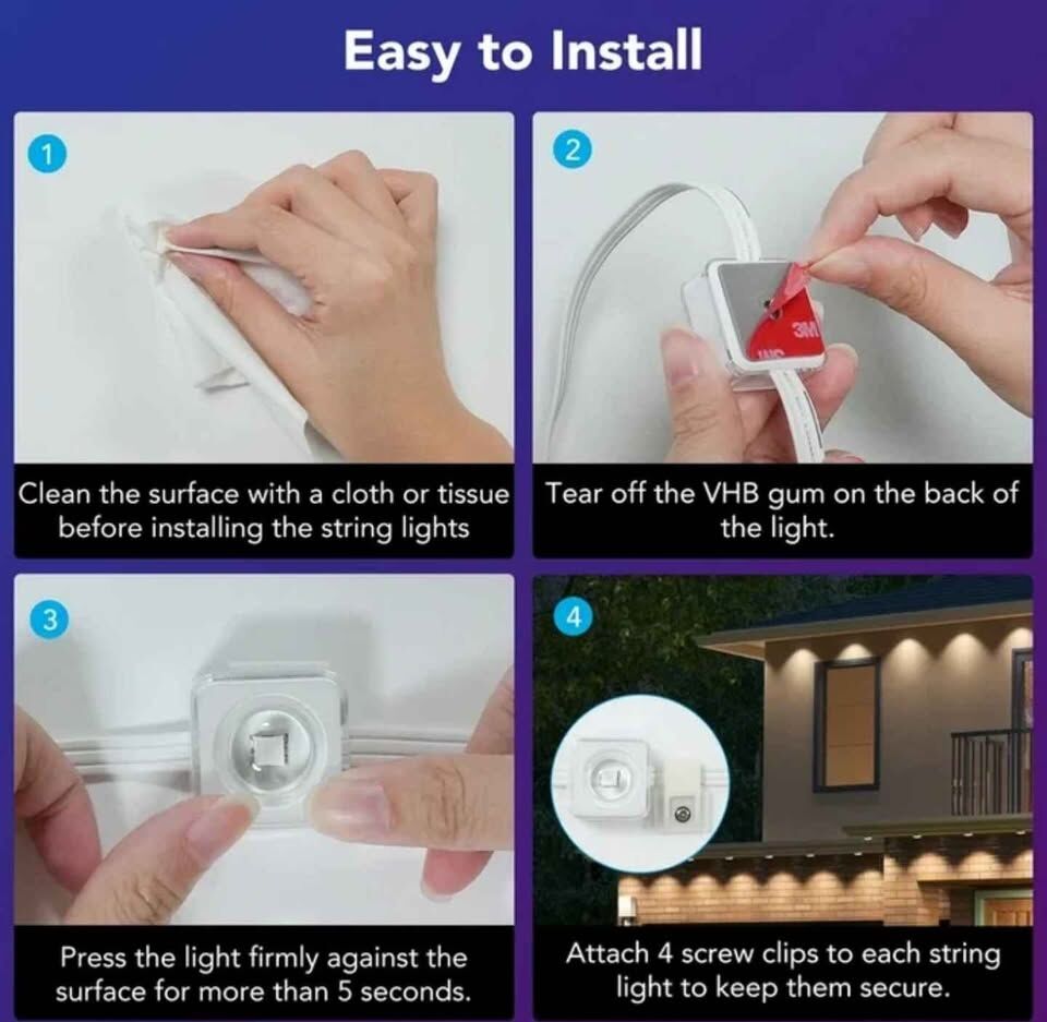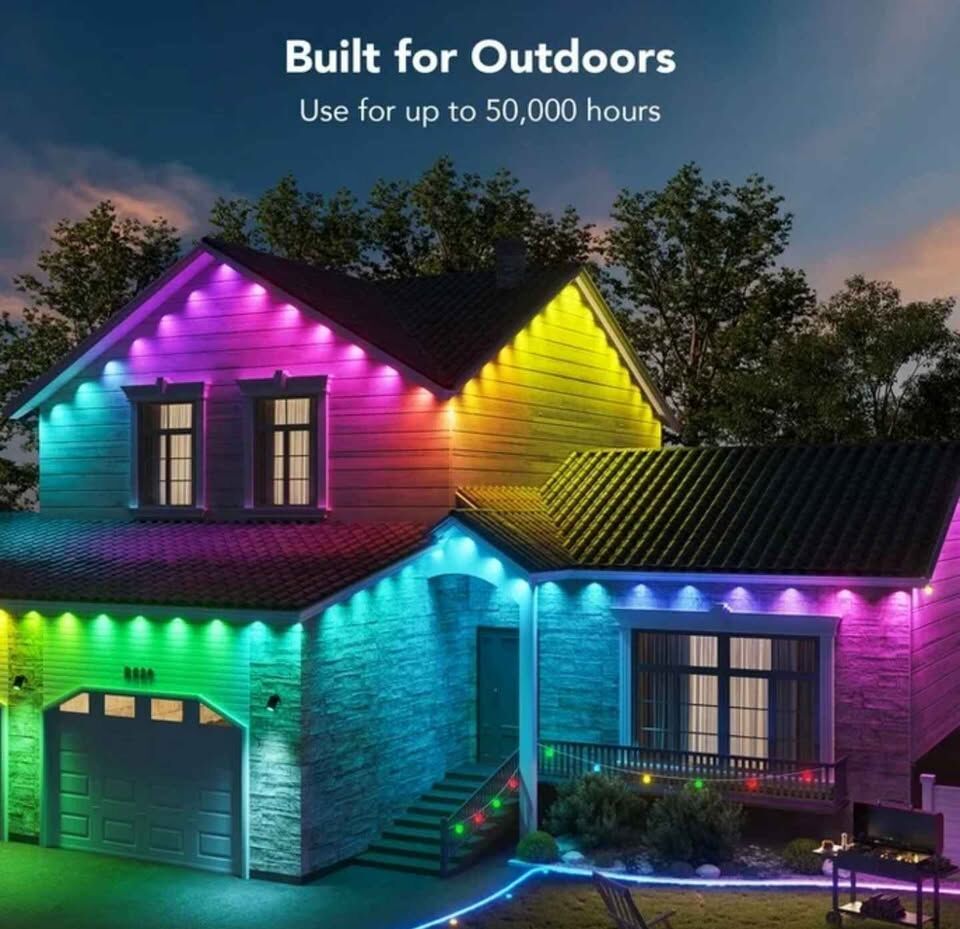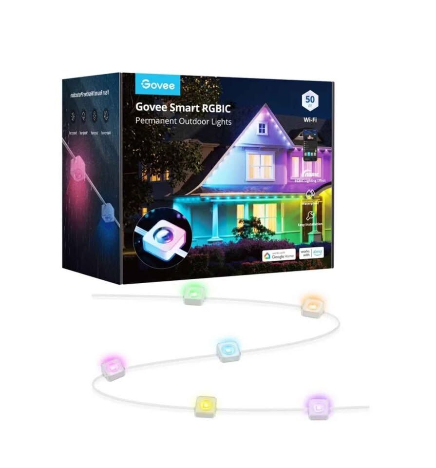 Govee 50ft RGBIC Smart White Permanent Outdoor LED Strip Lights with 36 Lights, Color-Changing, IP67 Waterproof, WiFi + Bluetooth, Patio, Garden Decor, Holiday Lighting