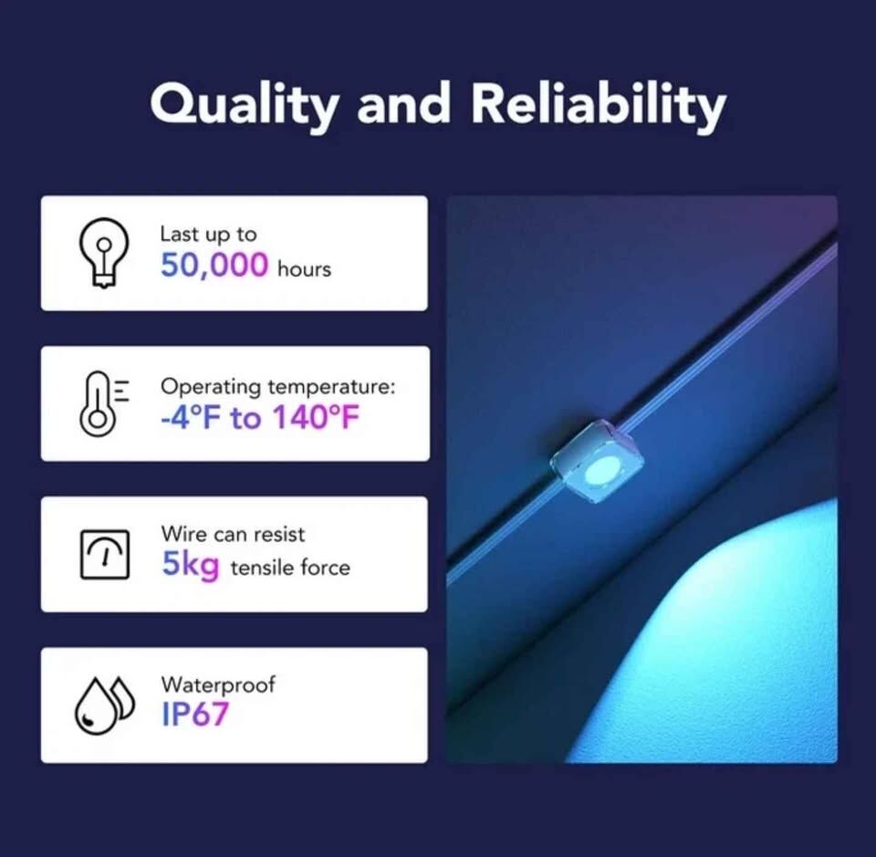 Make your home feel extra special with Govee outdoor lights for any occasion, including Valentine's Day, Christmas, Halloween, and more! These lights feature 75 scene modes, 16 million colors, and 26 lumens for each light to make your lighting combinations unique and stunning. Eye-Catching Lighting Effects: Wall-washing depth is greater than 16 inches, while the brightness of each light is 26 lumens. Outdoor Durability: Featuring anti-UV material, these outdoor lights are IP67 waterproof with an IP65-rated control box and adapter. Smart App & Voice Control: Use Govee Home App to control each Govee light independently. Ideal for Valentine's Day festivities.