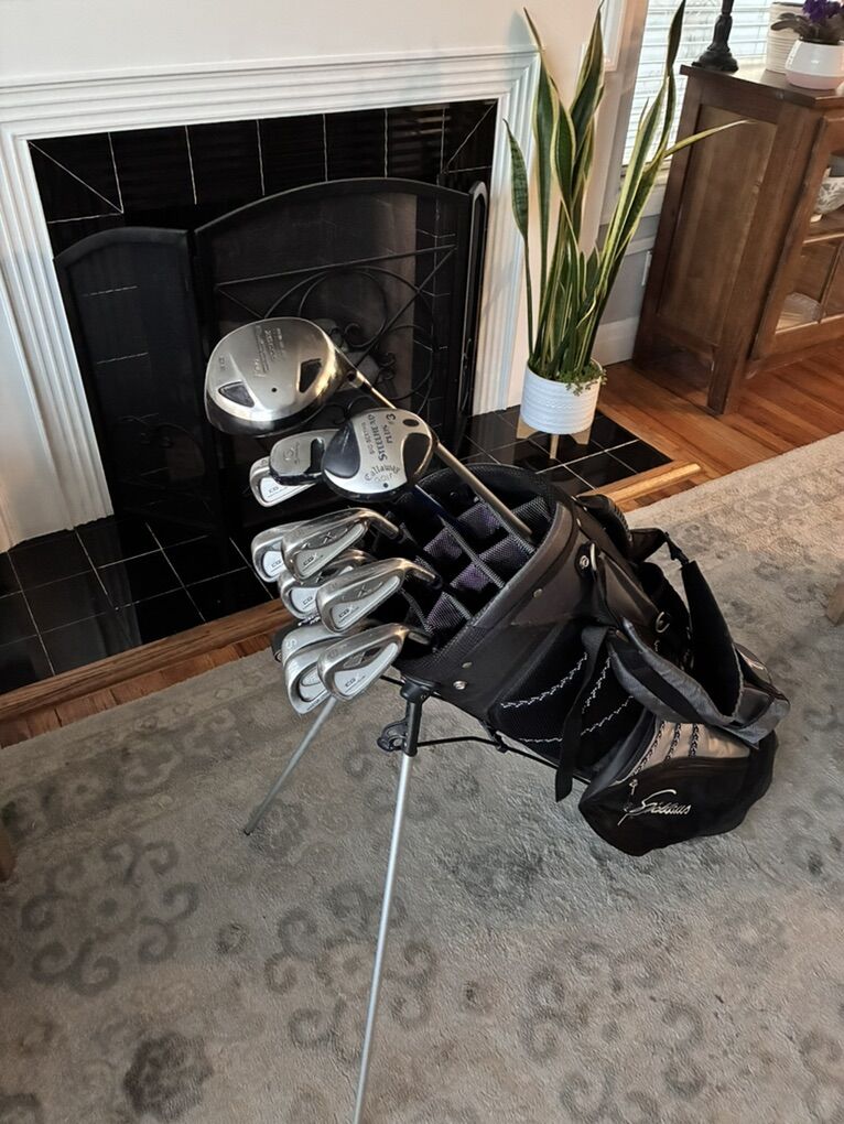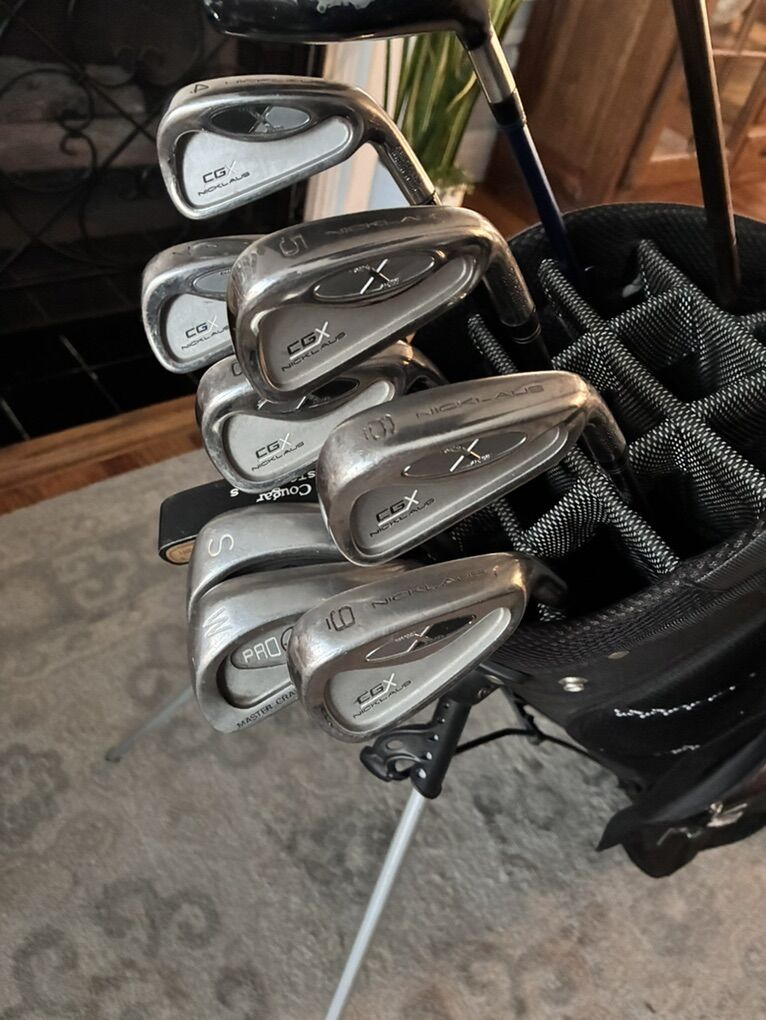 VenmoNice starter to intermediate set of men’s standard length golf clubs for sale. See pictures for comparable eBay pricing. Set includes Cobra driver, Callaway 3 wood, Sonartec hybrid, Nicklaus super steel cavity back irons, Ping eye 2 style wedges, 4-pw, sw total irons, blade putter, nice Nicklaus golf bag, golf balls, tees, ball markers etc. Set has everything you need to play some golf. Text Sam if interested.