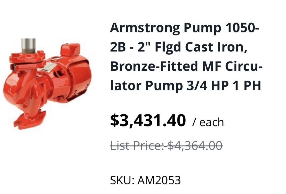 VenmoArmstrong Circulating Pump. Model: L2B 1050 AB Inline … Hot Water Pump. 3/4 HP. New $3500. Yours for $1700 obo.