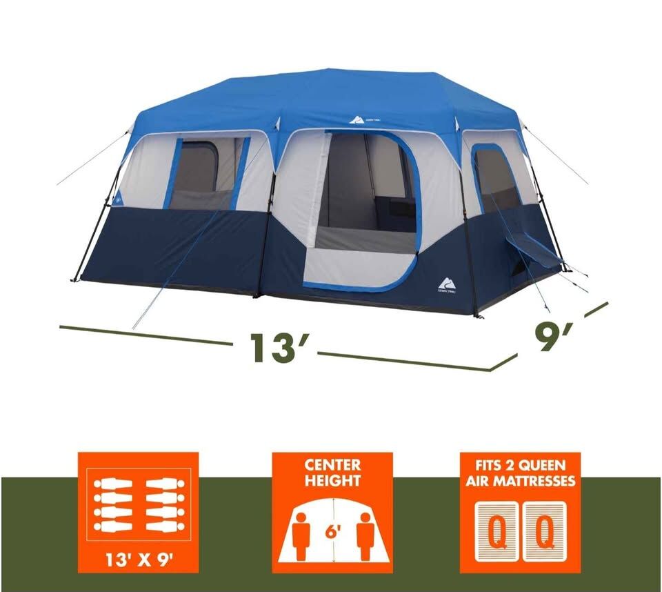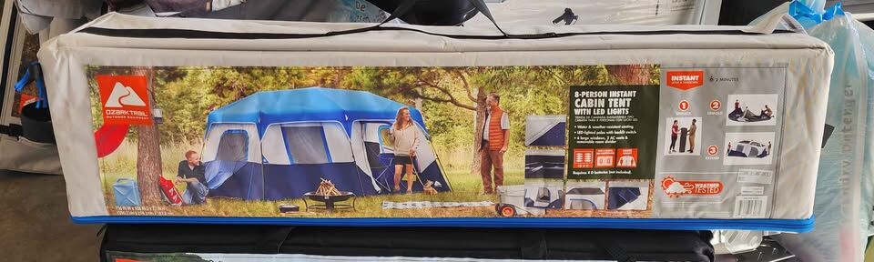 BRAND NEW!! Ozark Trail 13' x 9' 8-Person Cabin Tent with LED Lighted Poles