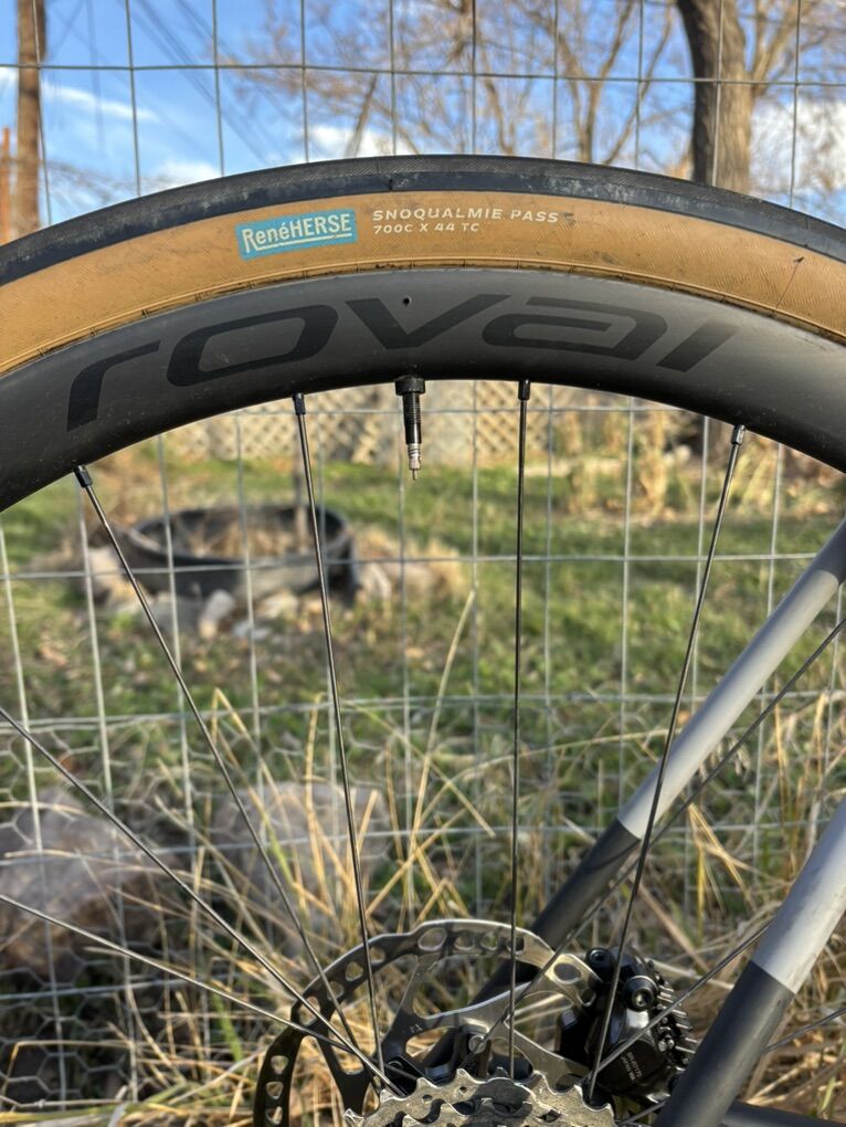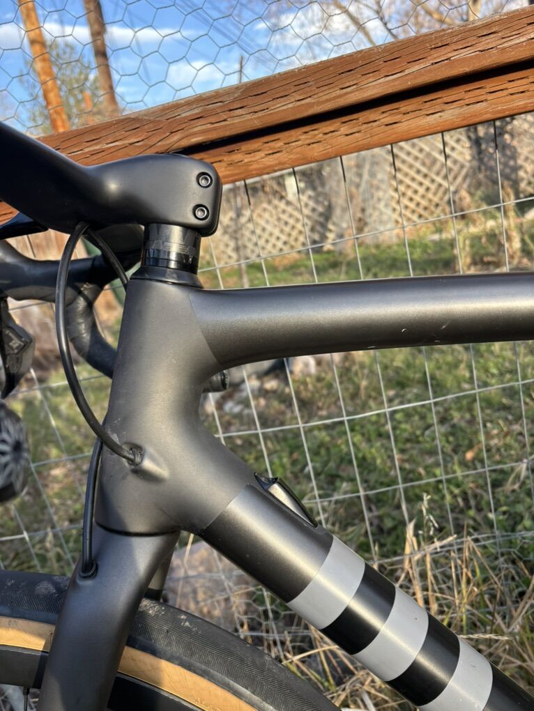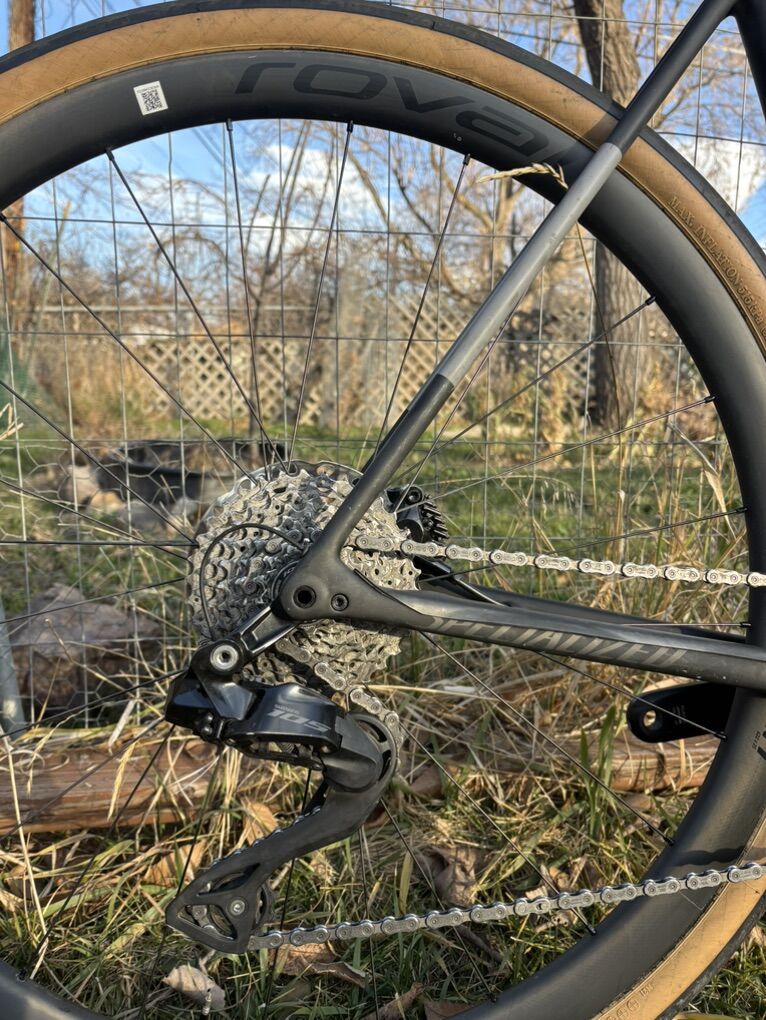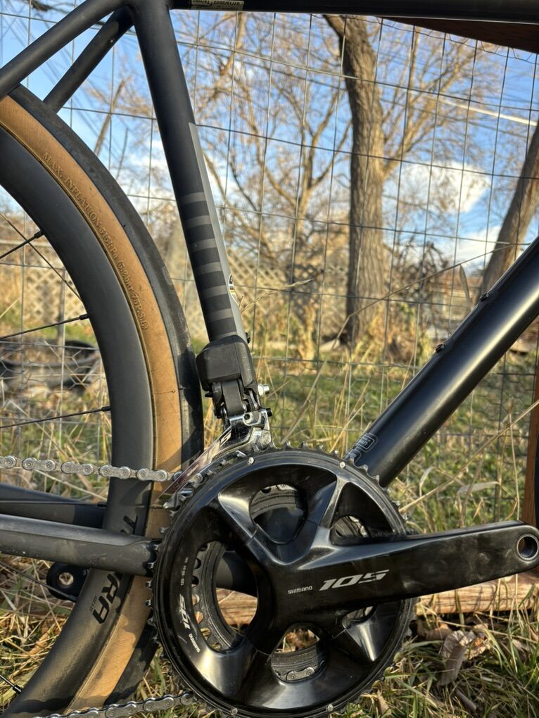 Crux frame Roval Terra CL wheels Roval Rapid Cockpit Roval Alpinist seatpost Shimano 105 Di2 group set Rene Herse 44c tires (Set of Maxxis Rambler 45c also for asking price) Specialized Power comp 143mm