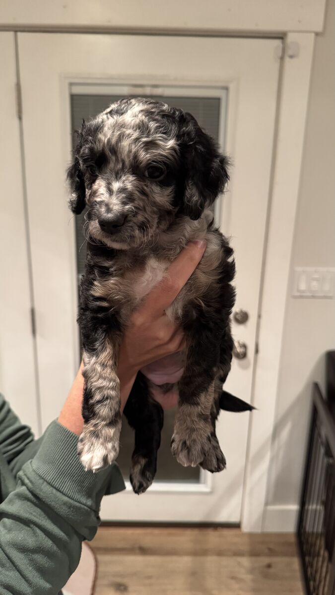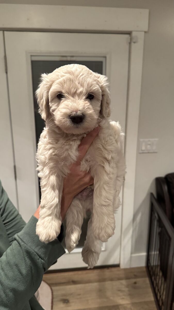 Dad: Mini Aussiedoodle F1, around 20-23 lbs. 2 years old. These would be considered Mini Golden Aussiedoodles F2. Both mom and dad are calm, trainable, and super sweet with kids. Born December 20, 2025, our little sweethearts will be ready to come to their forever home on February 14. There were 8 in the litter. 1 girl and 2 boys available, a great mix of colors and coat types, you’re sure to find one that fits your family perfectly. Health test. Dad has been genetically health tested and checked by a vet. Mom has undergone multiple vet checks and is currently undergoing a genetic test. Test results should be available before the puppies are ready to go home. Message if you're interested and want to see the pups.