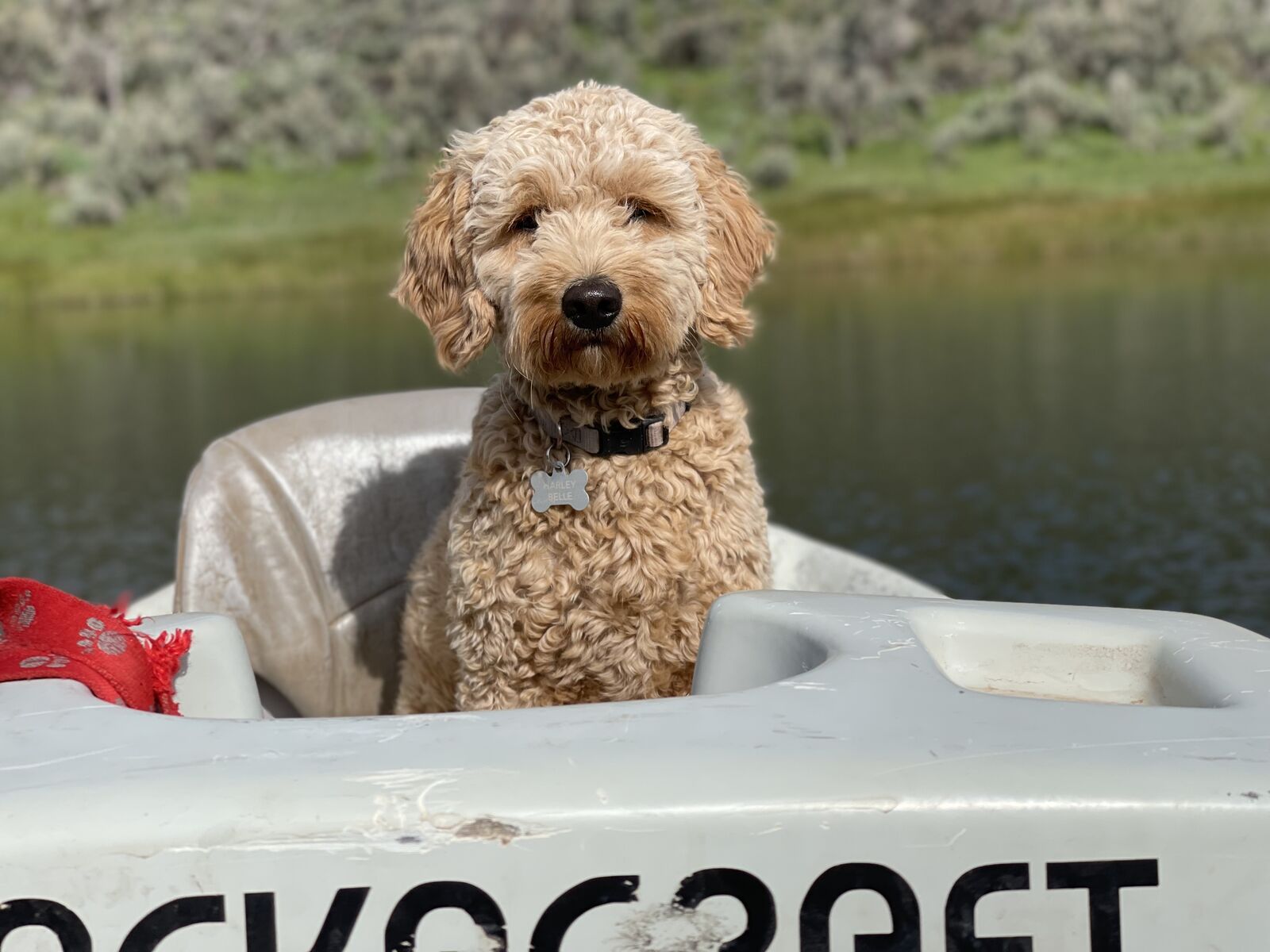 VenmoMom: Mini Golden doodle F1, around 30-32 lbs. Mom will be 5 in May.