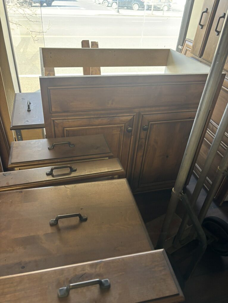 VenmoMiscellaneous Sized Alder cabinets. Low base cabinets. 12”, 14” and 17” D, 19” to 33” W and all are 23”” H Sink cabinets with drawers 48” W X 24” D X 36” H. Sink base no drawers 24” D X 36” X 31” H Wall cabinet 36” X 36” X 12”