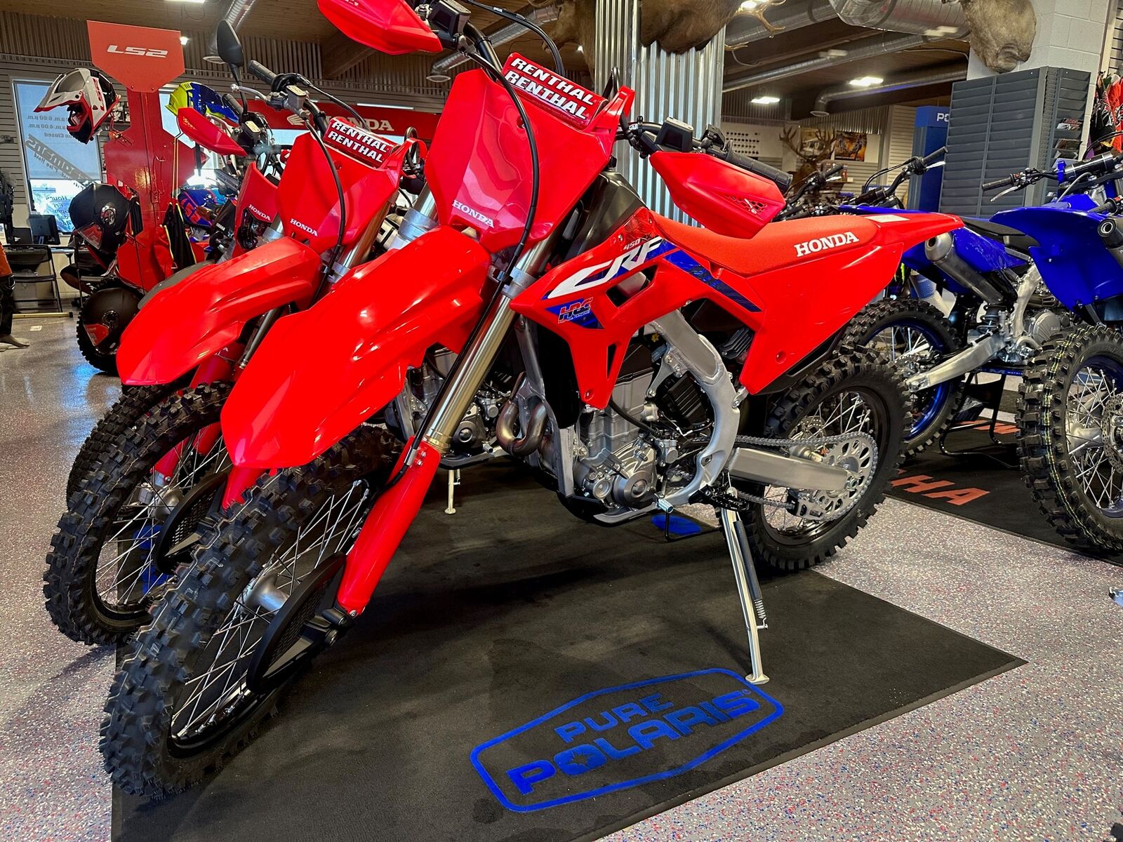 Stock #: H00552 Engine Type: Single-Cylinder Displacement: 27.4 cu. in. (449.8 cc) Bore and Stroke: Bore: 3.78 in. (96 mm); Stroke: 2.45 in. (62.1 mm) Cooling: Liquid Compression Ratio: 13.5:1 Fuel System: Gas Front Suspension: Inverted Fork Front Brakes: Disc Front Tire: Dunlop® Geomax AT81: 90/90-21 Rear Suspension: Twin Sided Swing Arm Rear Brakes: Disc Rear Tire: Dunlop® Geomax AT81: 120/90-18 Fuel Capacity: 1.7 gal. (6.4 L) Wheelbase: 58.2 in. (1478.3 mm) Ground Clearance: 13.1 in. (332.7 mm) Seat Height: 37.7 in. (957.6 mm) Trail: 4.6 in. (116 mm) Rake: 27.5 Transmission: Manual