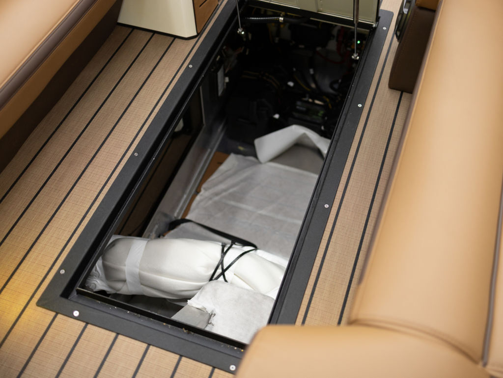 BASEMENT STORAGEA unique feature to the Surf Boss Family is our Basement Storage. Allowing you additional storage space for covers, life vests or any other storage needs that will keep your items safe and out of the way.