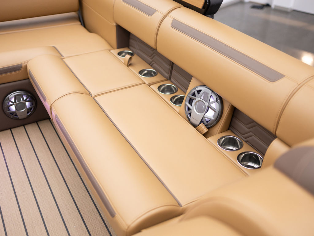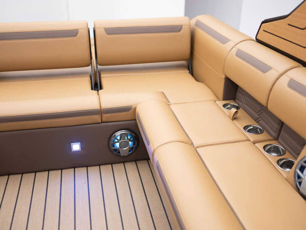 **LUXURY TO THE NEXT LEVEL.**The ultimate fusion between the luxury of a pontoon and the performance of a water sports tow boat.