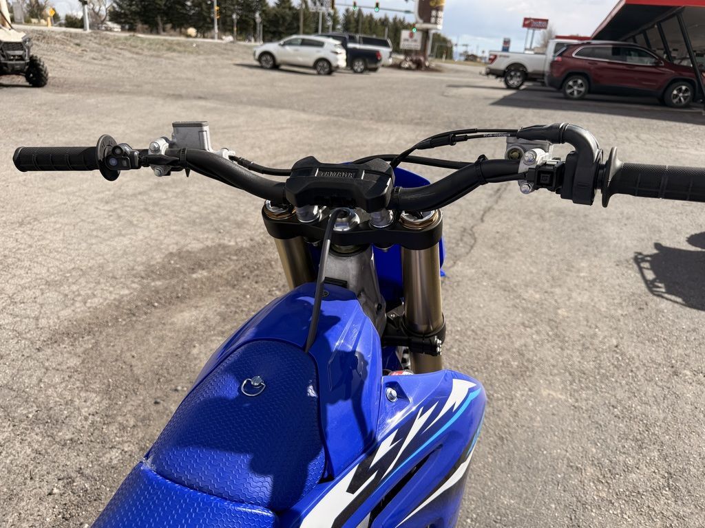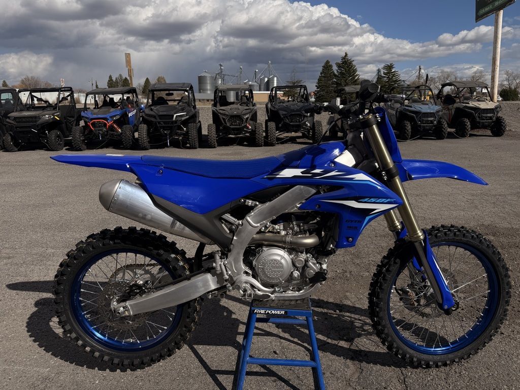 2026 Yamaha YZ450F Team Yamaha BluePERFORMANCE REFINEDThe class benchmark. Yamaha took the championship winning YZ450F and made it even better with highly refined power and handling characteristics for a level of feel and control that unlocks a racer’s full potential.Features may include:ENGINEYamaha's industry-leading Power Tuner App offers the ability to tune air/fuel mixture and ignition timing to suit rider preference.Tri-shaft transmission layout vertically stacks the transmission shafts for a lighter, more compact transmission.The YZ450F's advanced disc spring clutch design is compact, durable with smooth engagement and excellent feel.An adjustable Launch Control System controlled through the Power Tuner App optimizes launches when the gate drops.A three-level Traction Control System selectable within the Yamaha Power Tuner App maintains ideal rear wheel traction.Optimized intake path draws air from under the side covers and seat allowing for a slimmer and more compact shroud area.CHASSIS/SUSPENSIONAn advanced aluminum bilateral beam frame strikes the perfect balance of precise cornering performance and handling stability.The YZ450F's class-leading fully adjustable Speed Sensitive front fork provides exceptional feel and bump absorption.A new KYB® shock improves damping feel and reduces bump reaction for enhanced control.A large 270mm front and 240mm rear disc combine with Nissin calipers to provide exceptional stopping power and control.The YZ450F's slim, flat, compact body and seamless, rounded features ease rider movement for improved control.The rider triangle is optimized for increased legroom, including a carefully considered handlebar position for enhanced comfort.ADDITIONAL FEATURESThe YZ450F features a compact electric starter system to minimize restart delays and add convenience.Premium competition-inspired graphics are embedded to provide excellent durability and scratch resistance.Additional top-spec details include wide foot pegs, quick-adjust clutch perch and gold drive chain with YZ450F-specific chain guide.