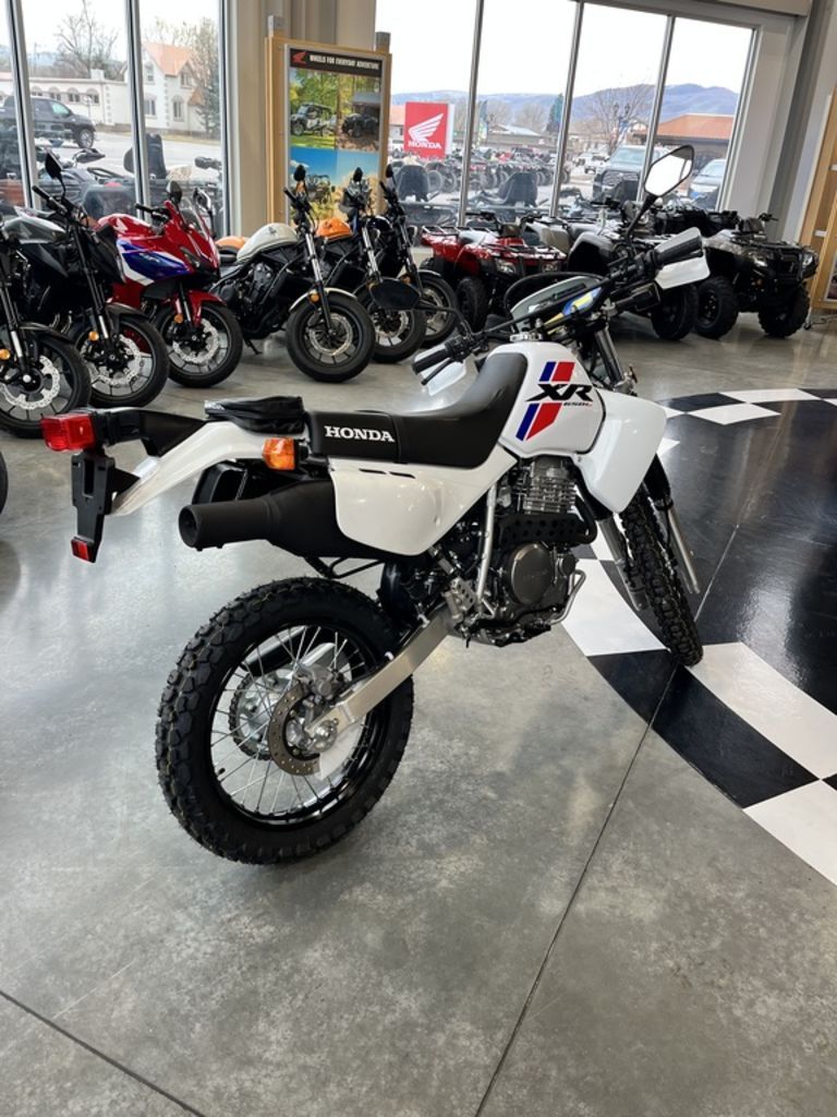 2025 Honda® XR650L Go farther. Discover more. Follow your heart wherever it leads with the XR650L. Its tough build, big-bore engine, and 21-inch front tire give you the confidence to conquer just about any terrain. A true Honda classic, this dual-sport legend doesn’t just get you there – it takes you on an unforgettable adventure every time you ride. Features may include: Four-stroke engine The 644cc big-bore, single-cylinder, four-stroke engine offers excellent fuel efficiency and a wide powerband while requiring minimal maintenance. Electric starter Adventure is just the push of a button away – the electric starter eliminates any off-road restarting drama or troubles getting going on cold mornings. Fully street legal Equipped with turn signals, a license plate light, mirrors, a speedometer, and all necessary components for street legality, this bike puts the 'dual' in dual sport. Sealed battery The sealed battery provides ample cranking power for the electric starter and is well-protected from the rigors and vibrations of off-road use, eliminating any maintenance issues. Long-travel front suspension The 43mm Showa® long-travel cartridge front fork is designed and developed with knowledge from countless Baja wins. It offers compression-damping adjustability, allowing you to fine-tune it for varying conditions on- and off-road. Blacked-out style To achieve a sleeker, more modern appearance, we gave the bike black rims front and rear, as well as black fork boots, seat, and tool bag. Factory handguards The handguards are designed to be off-road ready right out of the box and help protect against rocks, branches, brush, and more.