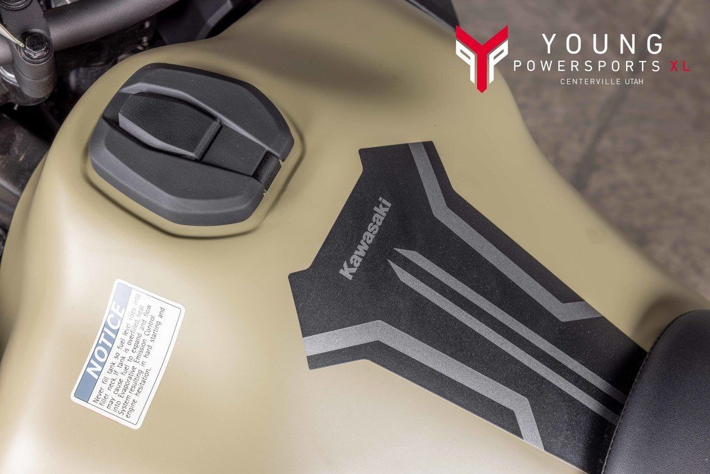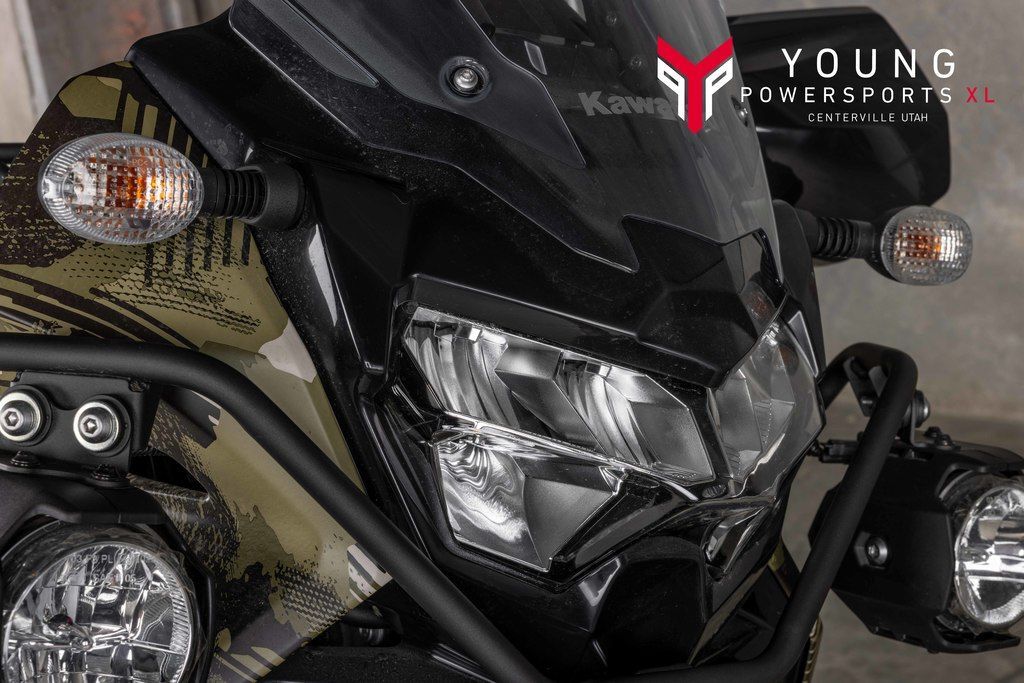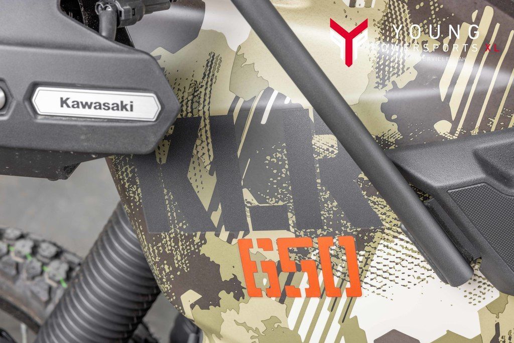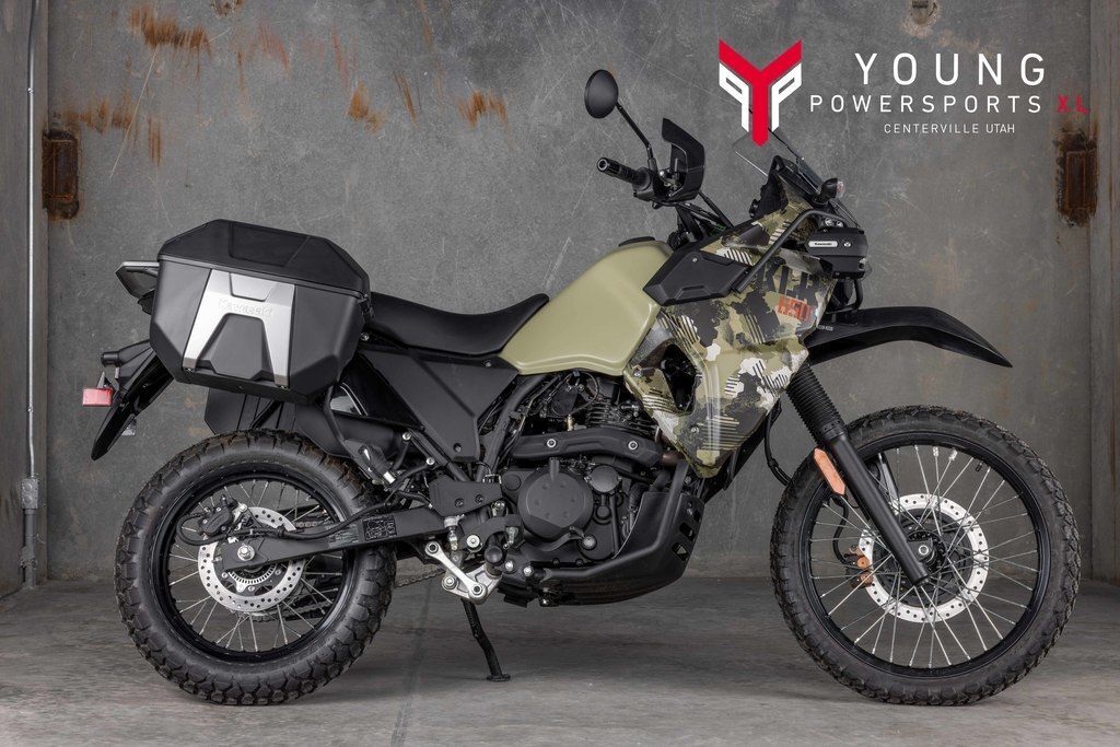 2026 Kawasaki KLR®650 Adventure ABS Cypher Camo BeigeESCAPE. EXPLORE. ENVY.