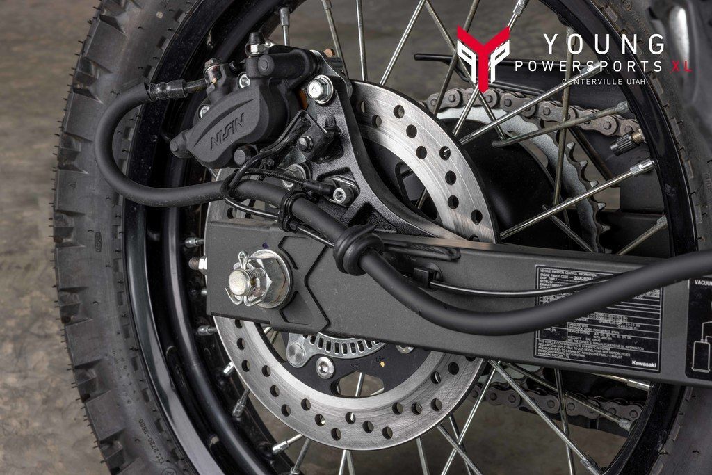 Ride confidently through varying terrain with a durable chassis and long-travel suspension. A sturdy 41mm fork handles suspension duties up front, and an adjustable Uni-Trak® rear suspension system helps the KLR®650 motorcycle deliver an all-around composed riding character while front and rear disc brakes help you stop with confidence.