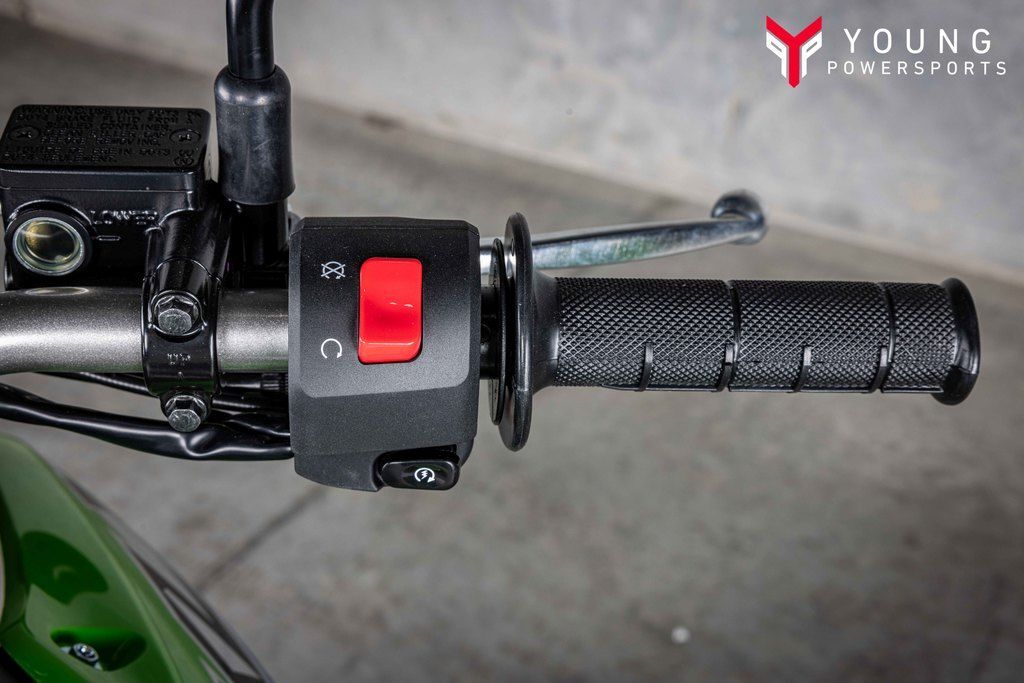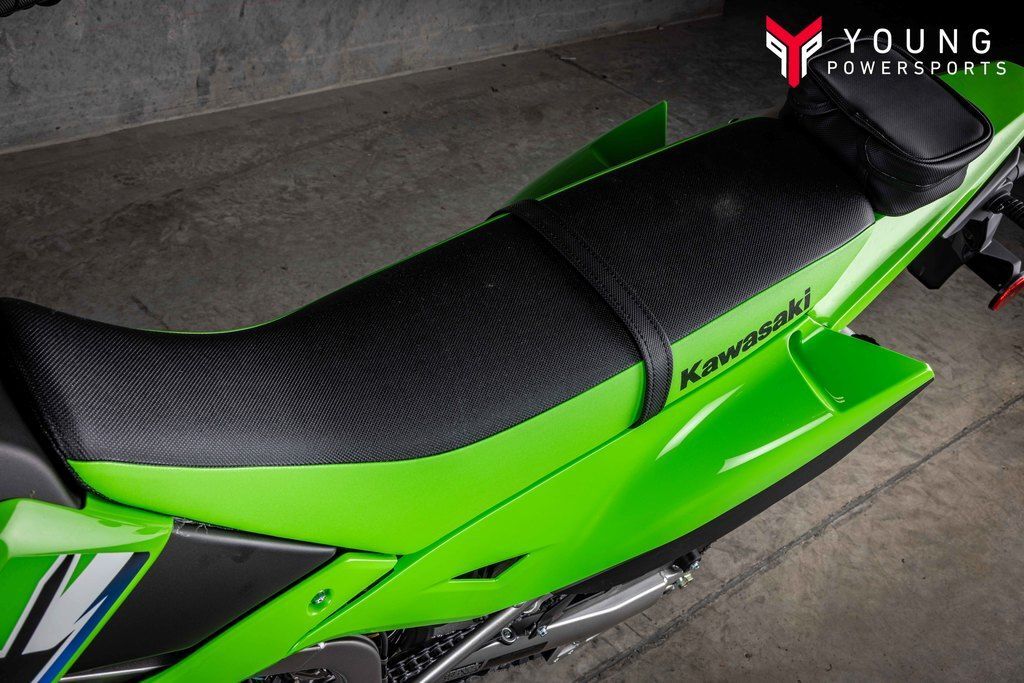 The KLX®300 dual-sport’s rider-friendly ergonomics closely align with the KLX®300R off-road motorcycle, offering an upright and relaxed riding position. Footpegs are positioned closer to the bike’s centerline for optimal riding comfort during on- and off-road excursions. Complementing adventure capabilities is a thick-padded seat that provides comfort on longer rides, while the 35.2-in seat height allows riders to comfortably reach the ground at stops for added confidence. The shroud design allows smooth transitions when shifting, enabling riders to feel more at one with their machine when cornering.