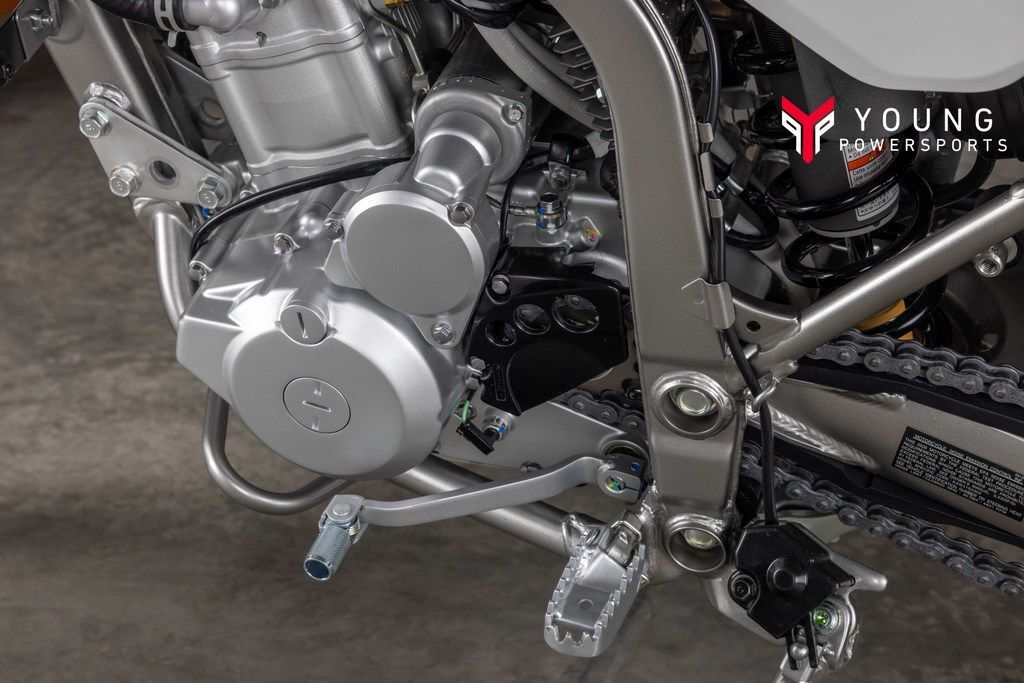 The KLX®300 dual-sport’s rider-friendly ergonomics closely align with the KLX®300R off-road motorcycle, offering an upright and relaxed riding position. Footpegs are positioned closer to the bike’s centerline for optimal riding comfort during on- and off-road excursions. Complementing adventure capabilities is a thick-padded seat that provides comfort on longer rides, while the 35.2-in seat height allows riders to comfortably reach the ground at stops for added confidence. The shroud design allows smooth transitions when shifting, enabling riders to feel more at one with their machine when cornering.
