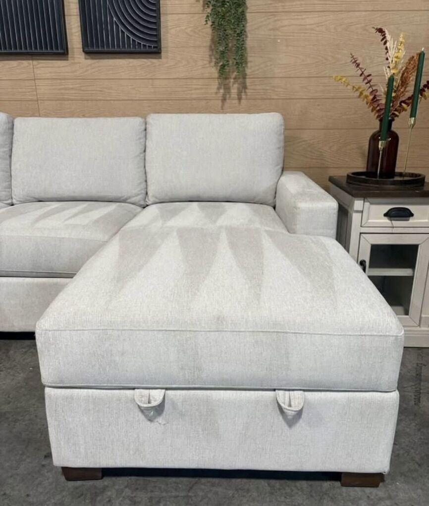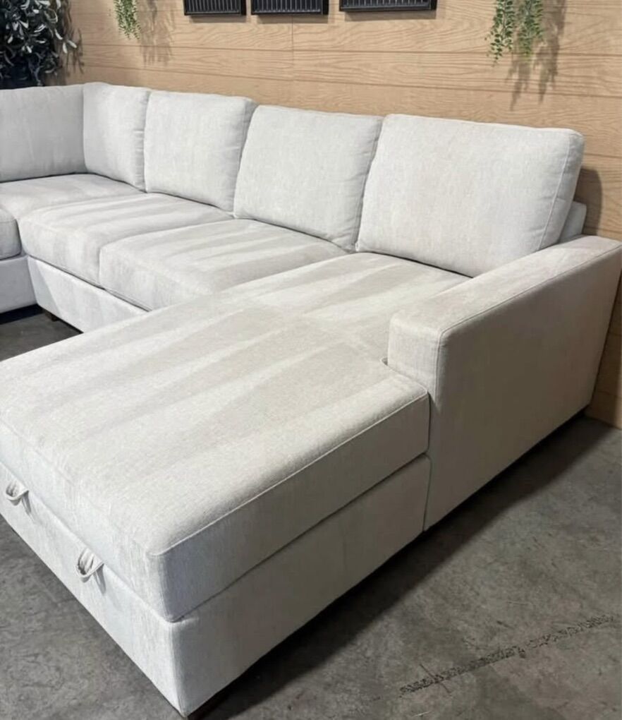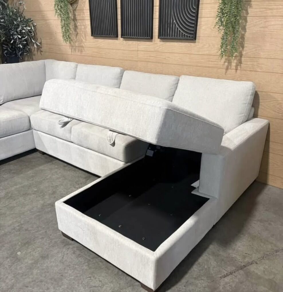 Transform your living space with the Thomasville Glenn Sectional with Storage Chaise. This modern sectional, featuring a sleek track arm design, effortlessly enhances any room with its contemporary charm. The spacious chaise offers a luxurious spot for relaxation, while the hidden storage beneath keeps your essentials out of sight but close at hand. Perfect for both entertaining and quiet evenings, the Glenn Sectional is where style meets function, making it the ideal addition to any living or family room.