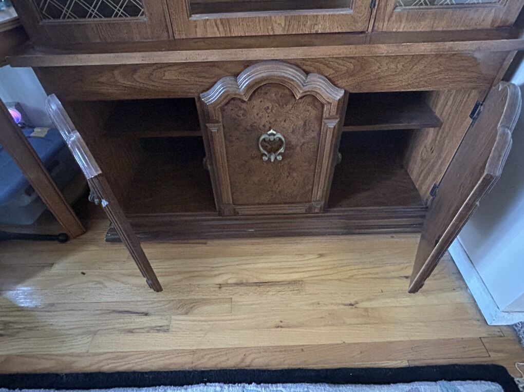 VenmoNice China hutch, curio or buffet by Brothill Industries in great condition, walnut finish, measures 79 inches tall, 47 wide and 16 deep. Glass shelves overlap, they are a touch too long but work as is. One piece, does not come apart, please bring help as is fairly heavy, cash or Venmo only.