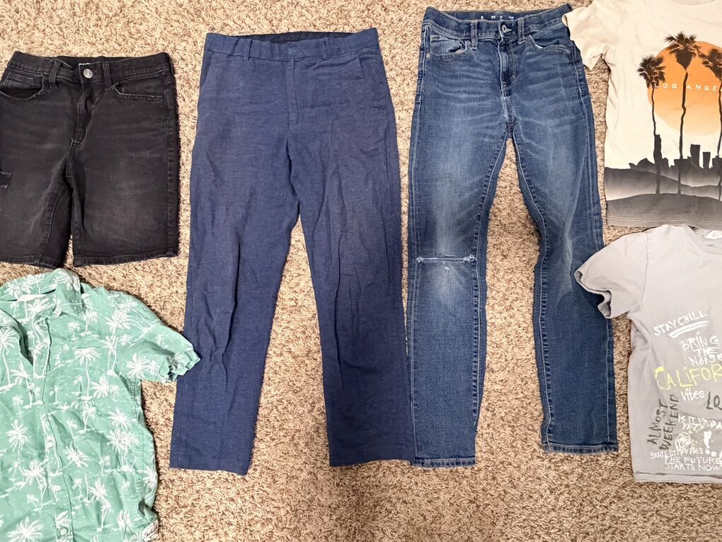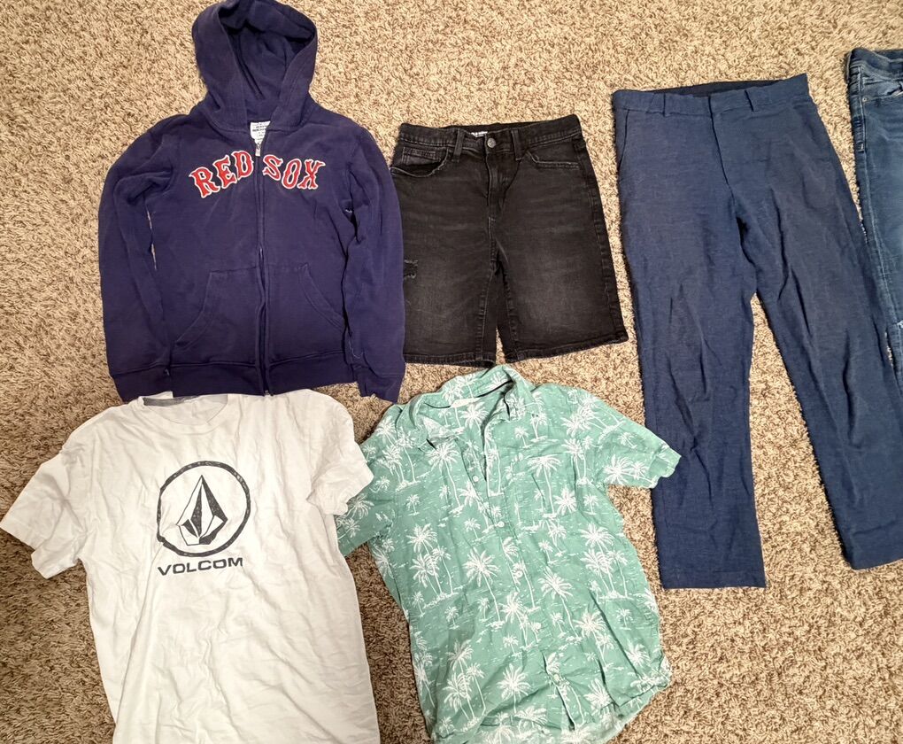 VenmoBoys clothes size 14. Mostly Old Navy and H&M. Comes with 4 short sleeve shirts, 1 button up shirt, 2 jeans, 1 pair of dress pants, 2 zip up hoodies, and 1 pair of shorts. All for $15