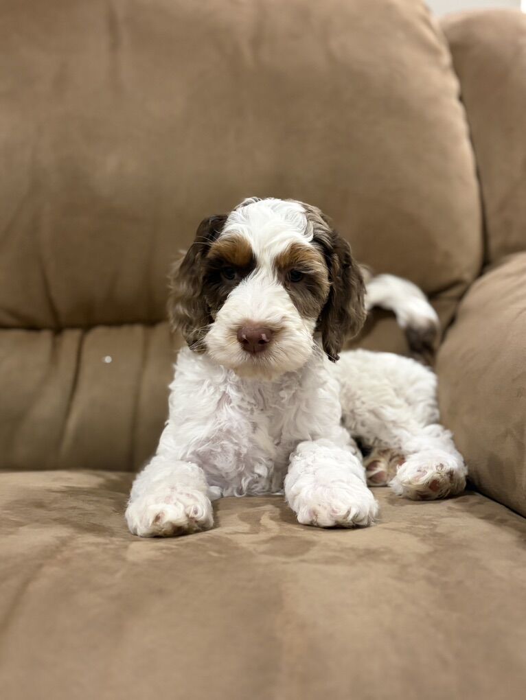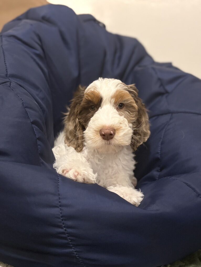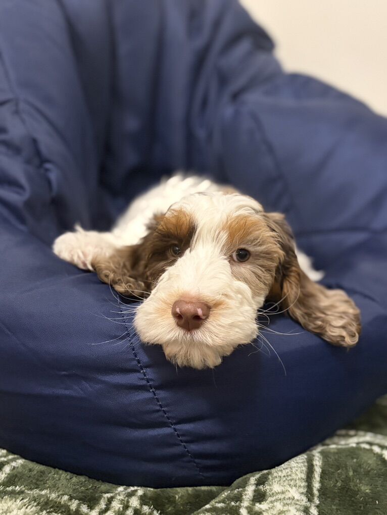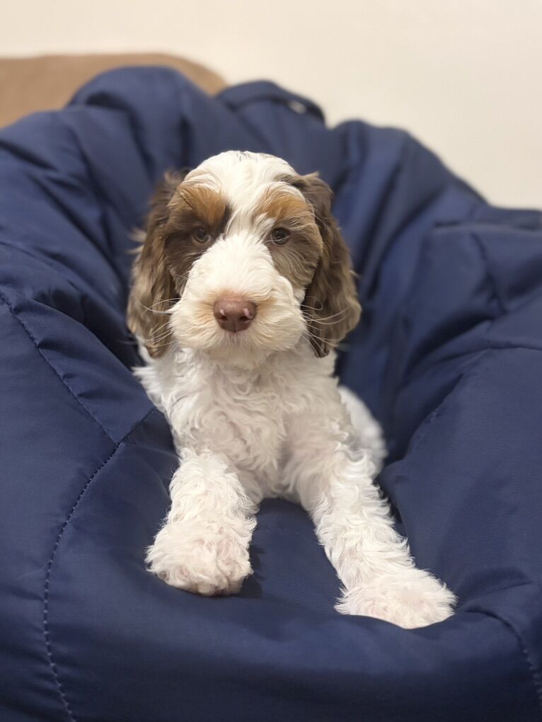 We have 1 male available and ready to go home. Pups will all have silky, wavy, non shedding coats. 40-60lbs full grown. Mom is a working Allergy/Asthma/Anaphylactic Alert Service Dog & Dad is CGC/CGCU Titled. We are expecting INCREDIBLE Therapy Dog & Psych Service Dog & Allergy/Asthma Alert Service Dog temperaments. What does this mean? It means these puppies should be BEYOND snuggly, social human loving smoosh balls with amazing noses for scent training. Also just incredible snuggly family pets.