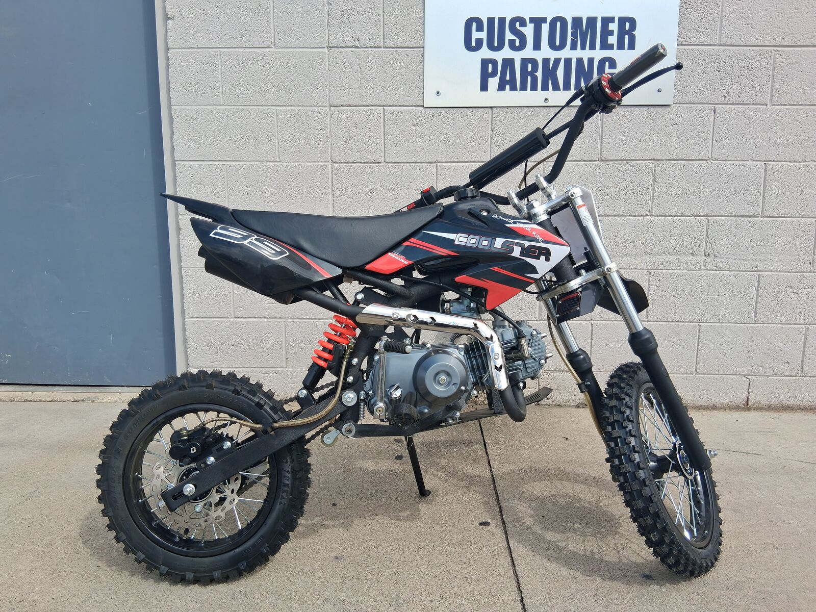 125cc Engine—4 Stoke—Air Cooled—Carbureted—Chain Driven—Manual Clutch or Semi-Automatic—CDI Ignition—Kick Start—Four Shift—Rear Hydraulic Disc Brakes—30” Seat Height—Front Tire 14”—Rear Tire 12”