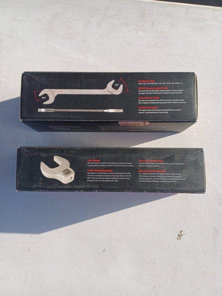 tekton anglehead open end wrench set 11 pieces 3/8 in up to 1 in and crowfoot wrench set 17-piece 3/8 in Drive 8 mm up to 24 mm brand new any questions please message me selling for $99 each set