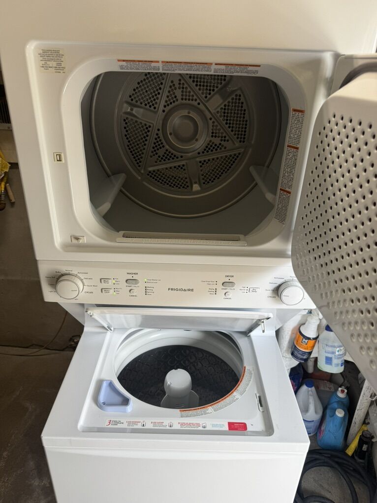 ZelleSelling stackable w/d like new in exellent conditions its a 2019 measurement 74 h 27 w 31 d if you are interested please message me at 801-865-3030 (delivery available)