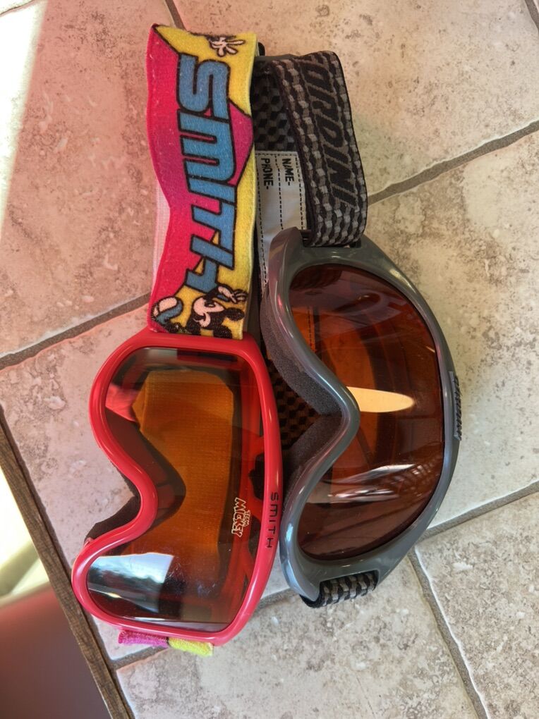Venmo2 pairs kids goggles. The size is probably best suited for a 2-3 year old. One is a mixky mouse smith brand. The other is a gordini brand. Both are in a good used condition. Lenses are in great shape with little to no significant scratches. Both have a low light lens great for most conditions. $10 for both or $5.00 each.
