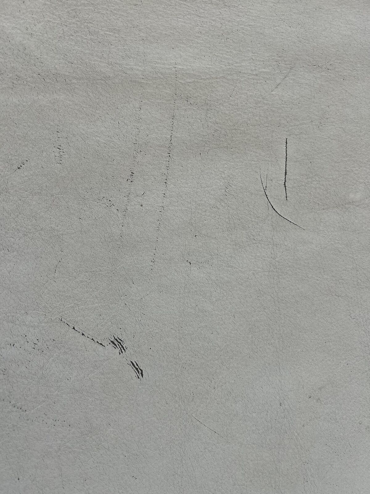 87x36 white leather sofa. Very sturdy, leather has some scratches.