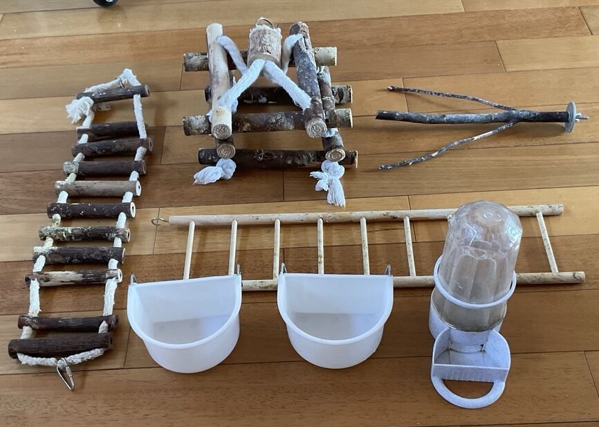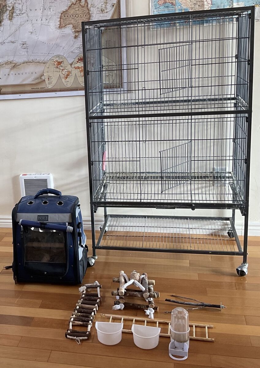 ApplePaySelling two birds with a cage and backpack with several accessories including food and water container, and some perches. The bird with rosey cheeks is calld Arti. He likes flying around the house. He likes to squack and sing. The other bird that is gray is a calm bird. her name is Shadow. The best way to hold Shadow is to hold her close to your body. they both like head rubs. They are two great birds.