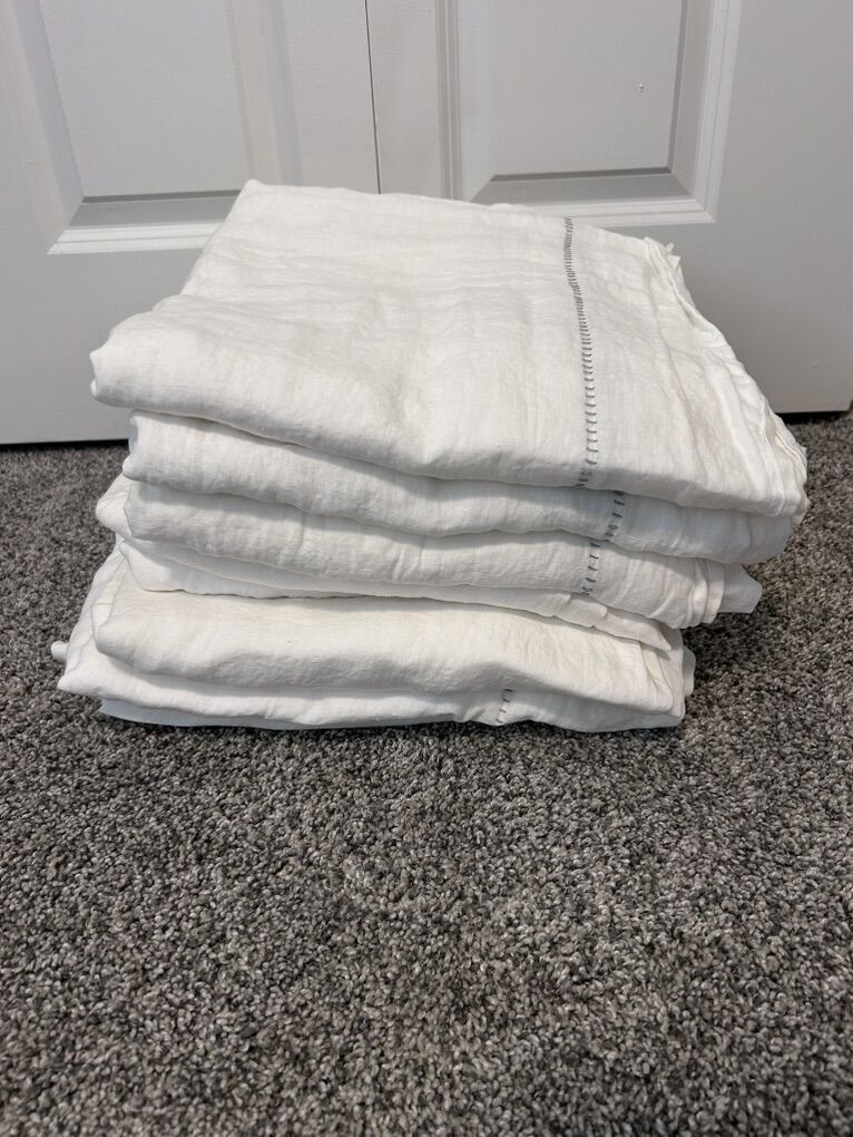 Beautiful white linen curtains from Anthropologie. 8 single panels, selling all of them. Selling because they don’t work with my current house. Used, but basically new condition. No pets or smoking in the house they were used in.