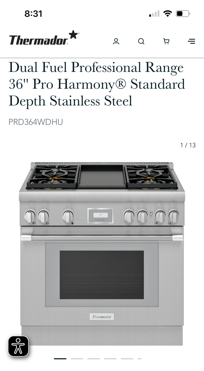 VenmoThis range/oven has gas burners on top and an electric oven. It is listed at $11,299 new. We have had it in our home for 5 years, and it works great. We are selling it because we wanted another one that has a few other functions and got a good deal on it. This range is a Professional Series Pro Harmony Range. Has a lot of upgraded functions. It is 36" wide, has four burners, 2 large and 2 medium-sized, plus a griddle. It can be run via Bluetooth (your phone) and has the following oven settings: Convection Roast, Self Clean, True Convection, Convection Bake, Bake, and Remote Start.