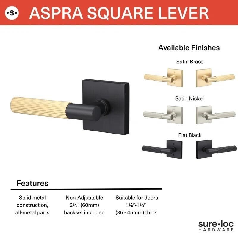 Elevate the appearance of your home with the Aspra Square Lever Series by Sure-Loc Hardware. Customize both the finish of the rosette and handle grip to create the perfect combination that expresses your personal style in a bold new way. With durable, solid construction, the Aspra Square Lever fits seamlessly into any space while making a dramatic statement.