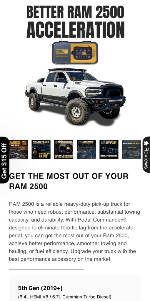 VenmoPedal Commander - RAM 2500 - 5th GEN Works for both 6.4 HEMI and Turbo Diesel Pedal Code - PC31 (VM specific)