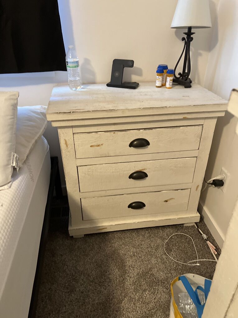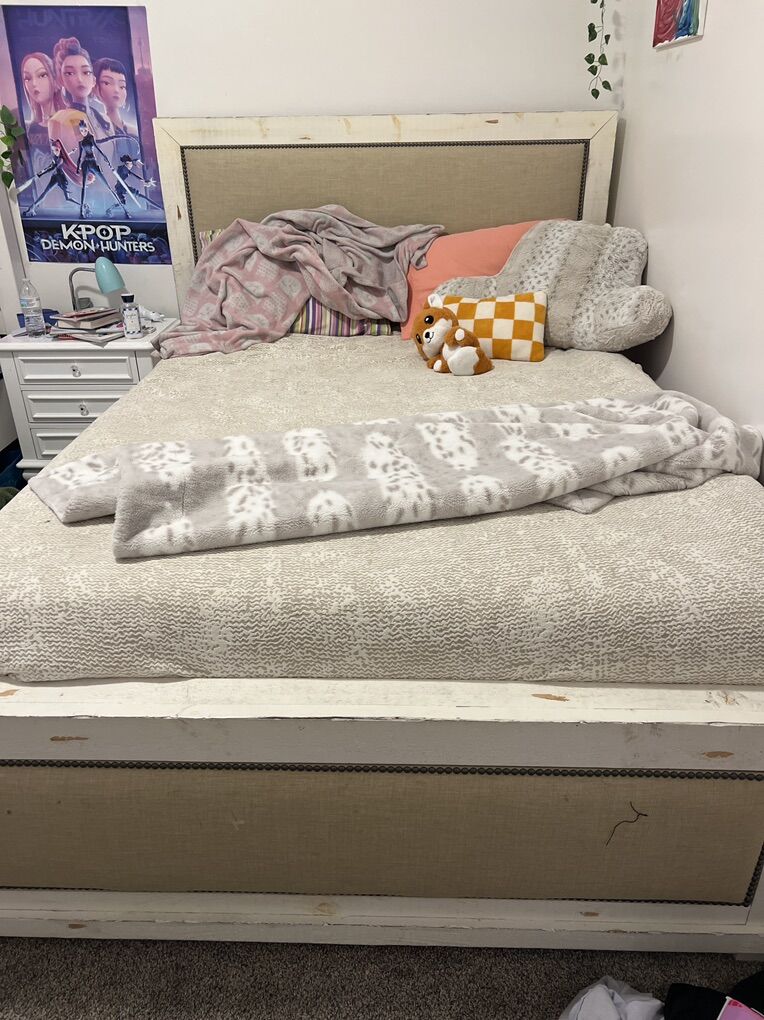 Queen solid wood bed set with chest of drawers and 2 side tables. $900 obo I want it gone