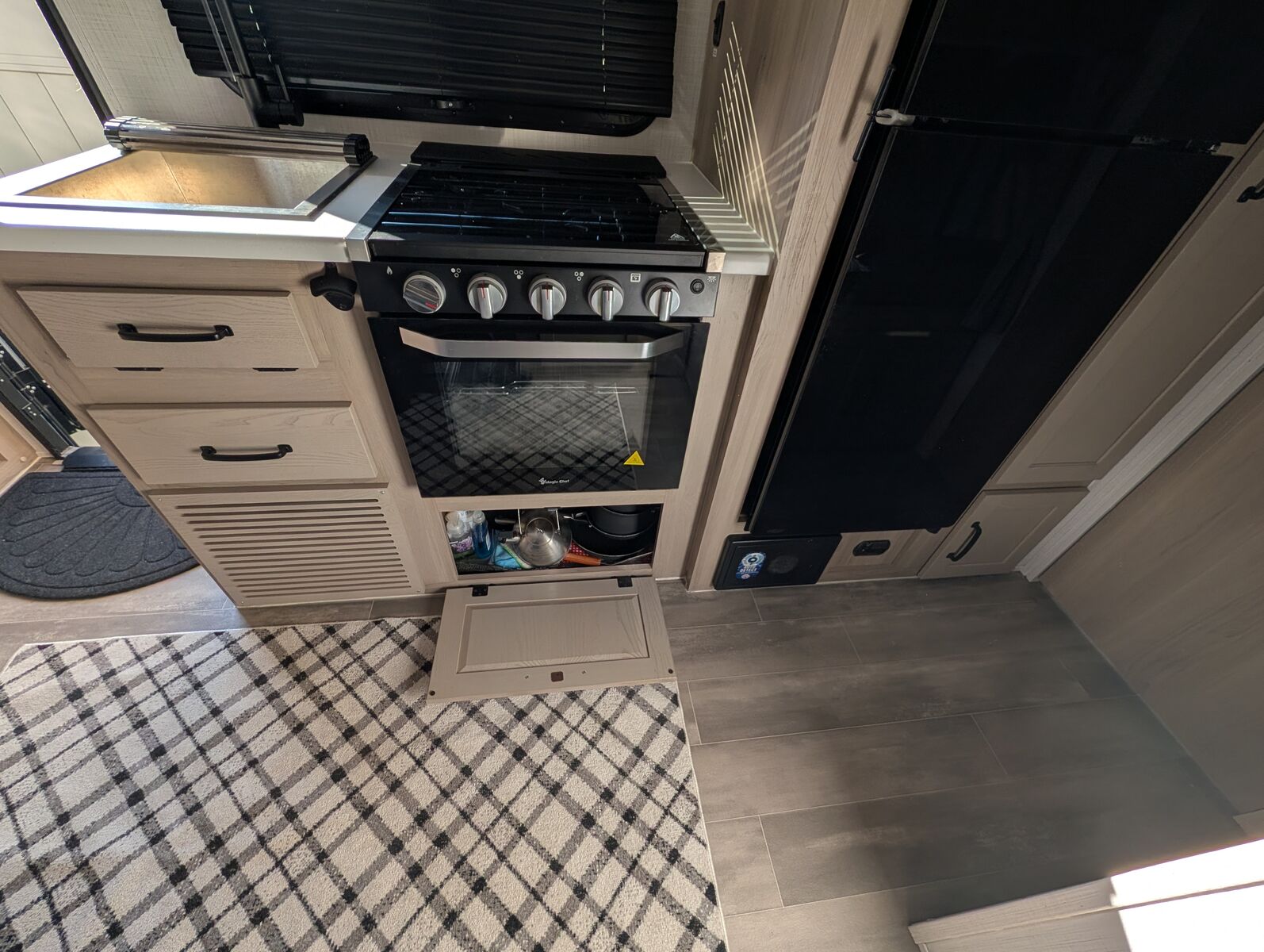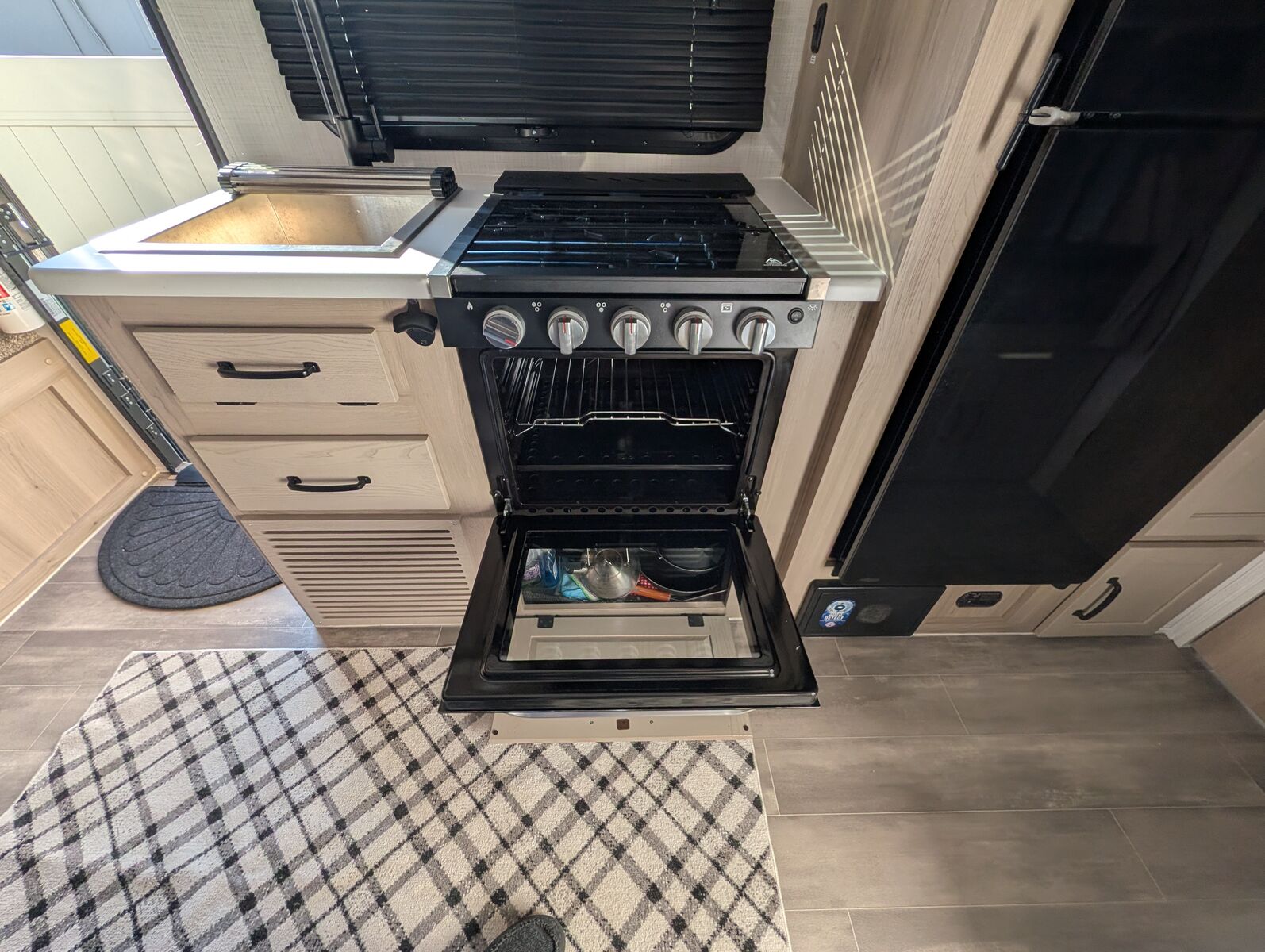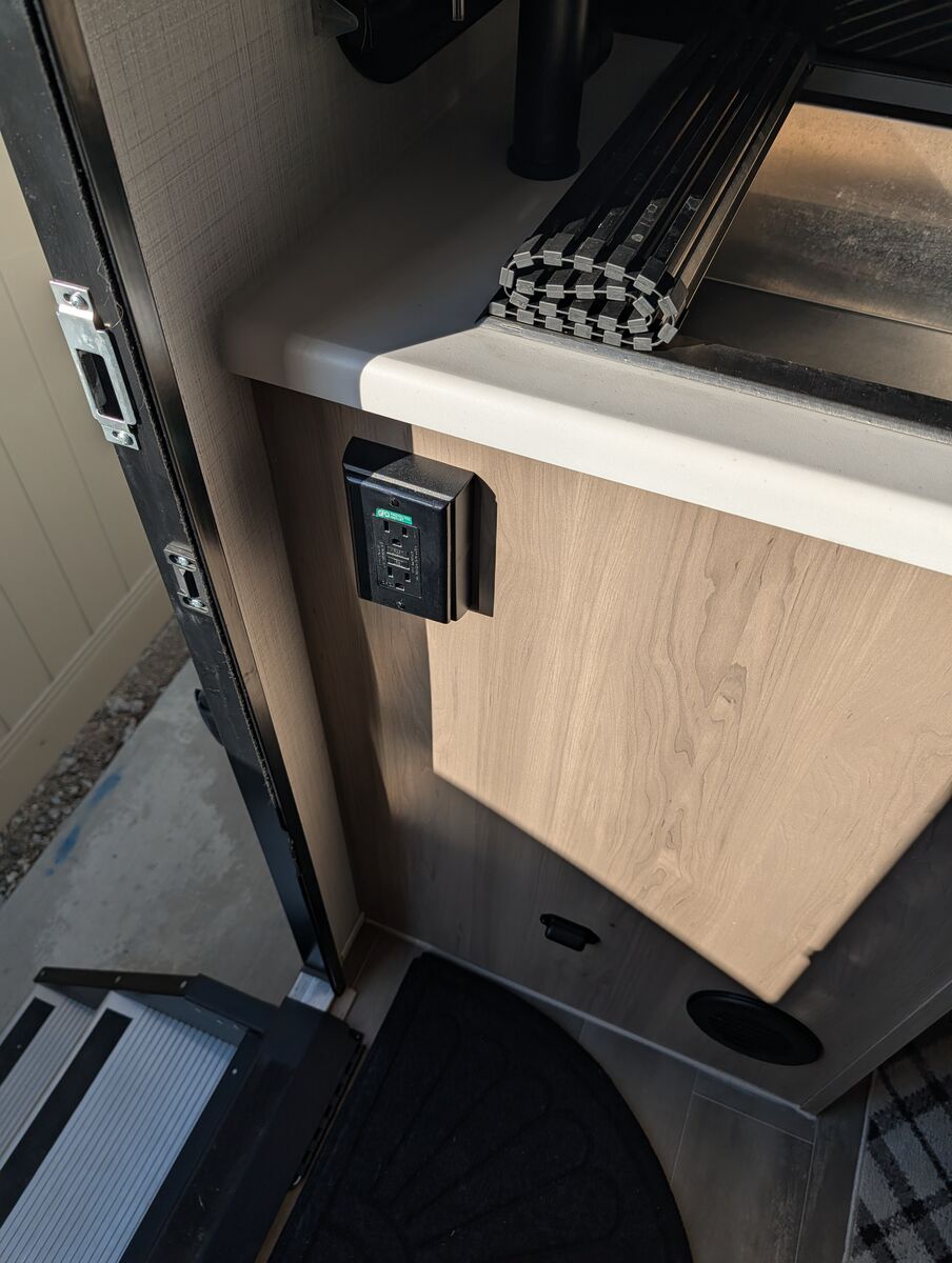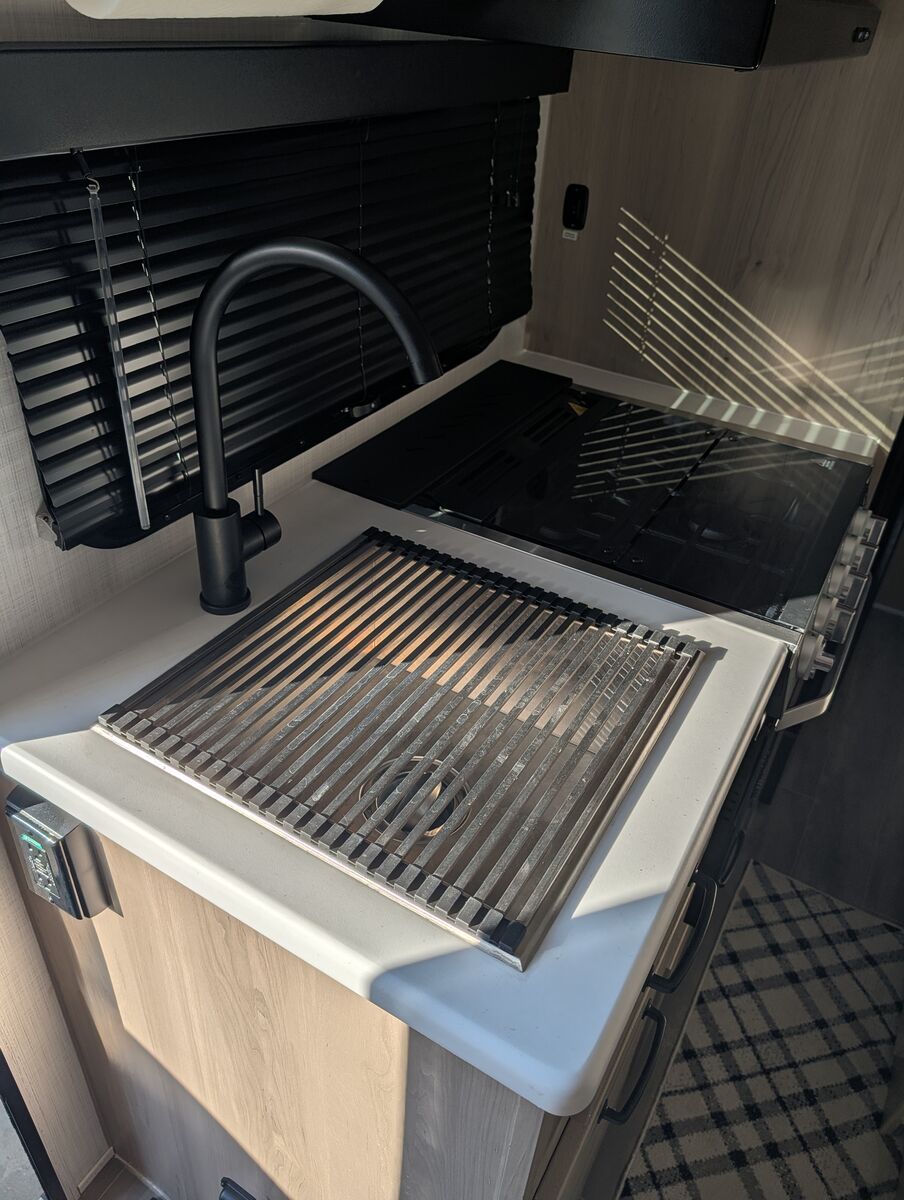 The 2024 Forest River Rockwood Geo Pro G20FBS is a travel trailer with a dry weight of approximately 3,545 lbs, a length of 21 ft 2 in, and a single slide-out. It features holding tanks that each hold around 27-31 gallons. Dimensions and Weight Exterior Length: 21 ft 2 in Exterior Width: 7 ft 8 in (92") Exterior Height: 10 ft Dry Weight: 3,545 lbs Hitch Weight: 398 lbs Gross Vehicle Weight Rating (GVWR): 4,398 lbs Cargo Carrying Capacity: 853 lbs Axle Count: 1 Capacities and Systems Fresh Water Capacity: 31 gal Grey Water Capacity: 27 gal Black Water Capacity: 27 gal Sleeping Capacity: 3 people Furnace BTU: 20,000 BTU AC BTU: 13,500 BTU LP Tank Capacity: 20 lbs (two tanks) Water Heater Type: Gas/Electric Quick Recovery Key Features Slide-out: 1 (72" sofa slide out) Awning: 14 ft power awning Tires: 15" Mud Rover Radial Tires with a lift kit Construction: 6-sided aluminum cage construction with composite wall construction Solar: 200W roof solar panel with an 1800W inverter is standard (an optional Power Package offers more solar/inverter capacity) Appliances: 12V refrigerator, 3-burner cooktop, and a microwave oven