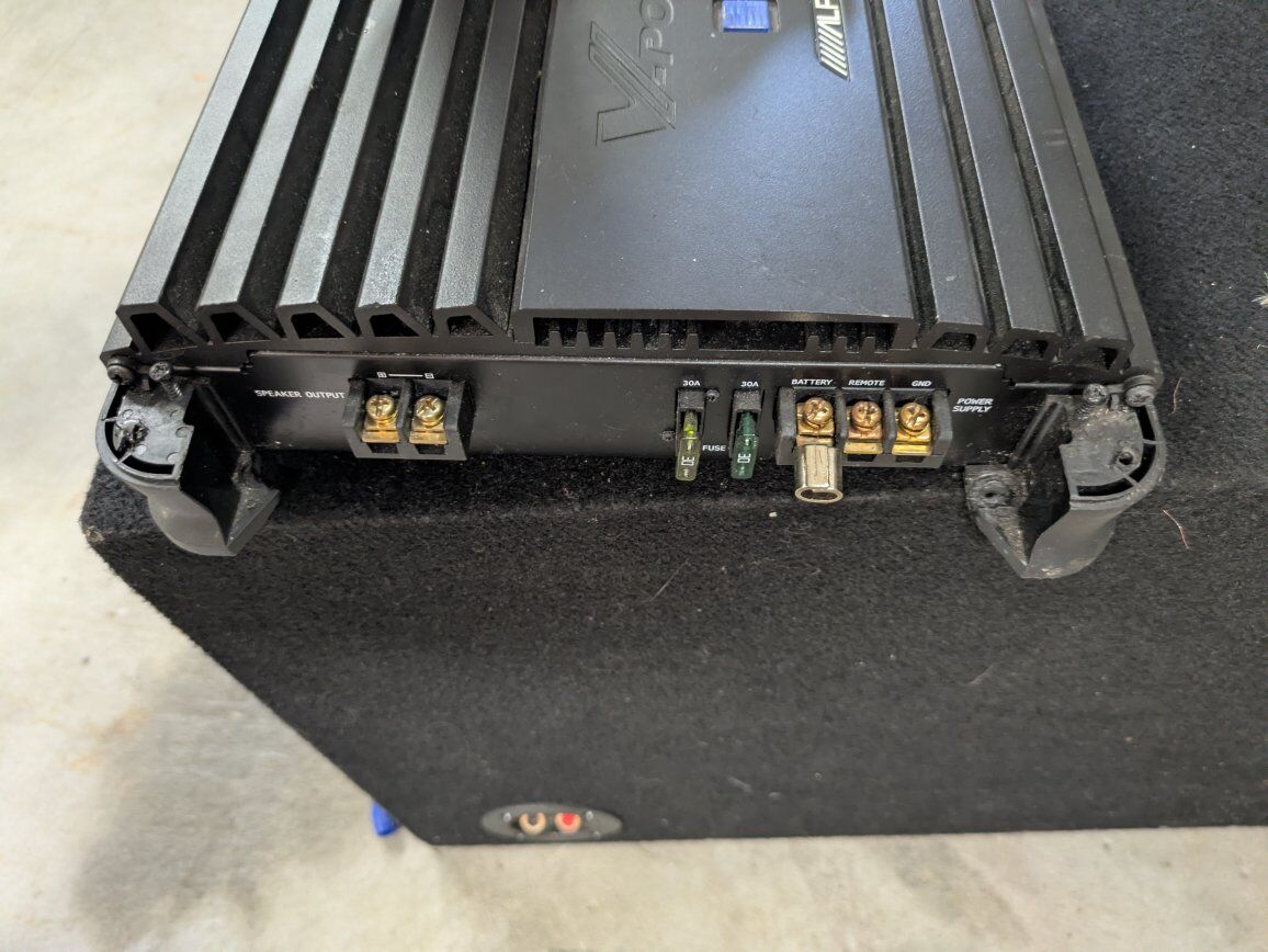 GooglePayThis came out of my kids car and it was crazy how much bass came out of it. JL audio 12" subwoofer in ported box. Alpine v-power mrp m500 amp. Also include a bunch of copper wire and speaker cables. this set up was probably worth $1,000 new. Very slightly used and in great condition.