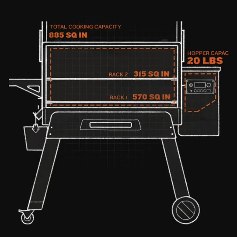 VenmoTraeger Ironwood 885 Floor Model for sale. New, never used, just looks pretty in our store. This high-performance wood pellet grill offers a massive 885 sq. in. of cooking capacity, easily handling up to 10 chickens or 7 racks of ribs across its two-tier porcelain grates. It features advanced WiFIRE® technology, allowing you to monitor and adjust temperatures precisely from 165°F to 500°F via your smartphone. Built for superior flavor and efficiency, it includes Super Smoke Mode to amp up the hardwood taste and double-side-wall insulation for consistent heat retention in any weather. With a durable D2® Direct Drive drivetrain for faster heating and a built-in pellet sensor to track fuel levels, this 6-in-1 versatile machine is perfect for anyone looking to master everything from low-and-slow smoking to high-heat searing.