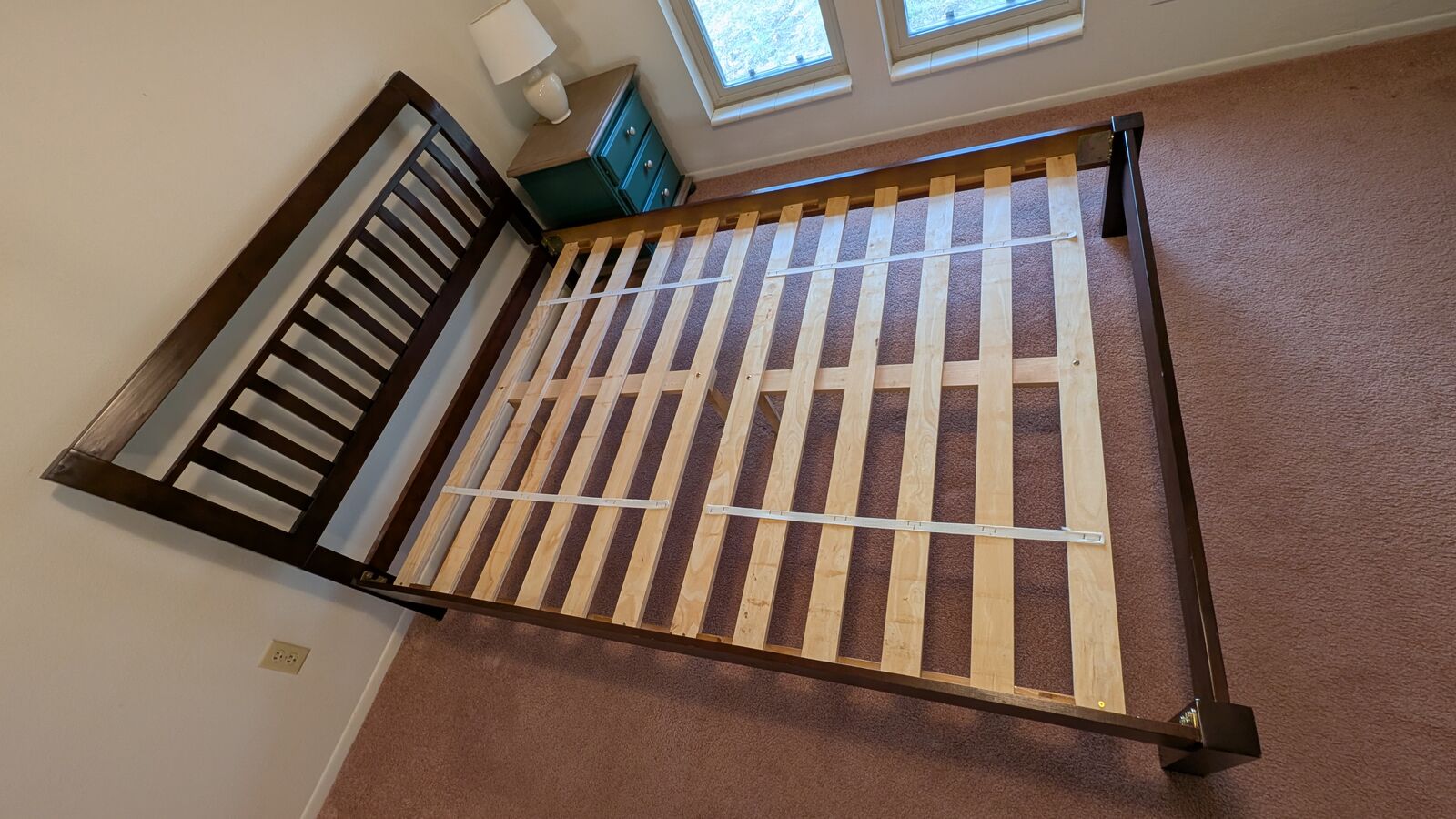 VenmoPlatform wood bed frame in very good condition. Finished in a dark stain, the bed frame easily disassembles for transport. It supports a standard full size mattress at 24" height without need for a box spring. The mattress is included with a mattress protector in the price. The mattress is also in very good conditon. We have owned both since new. Our house is non-smoking with no pets.