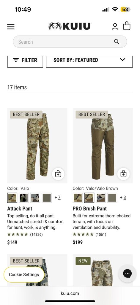 They are Kuiu’s best selling hunting pant, my wife loves them, but just need some extra cash.