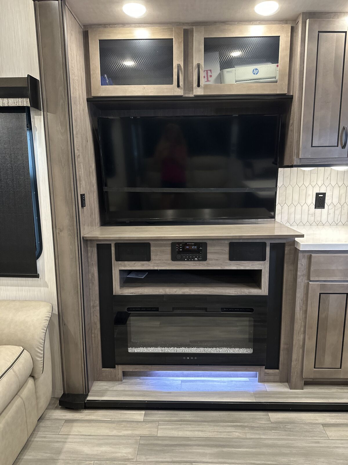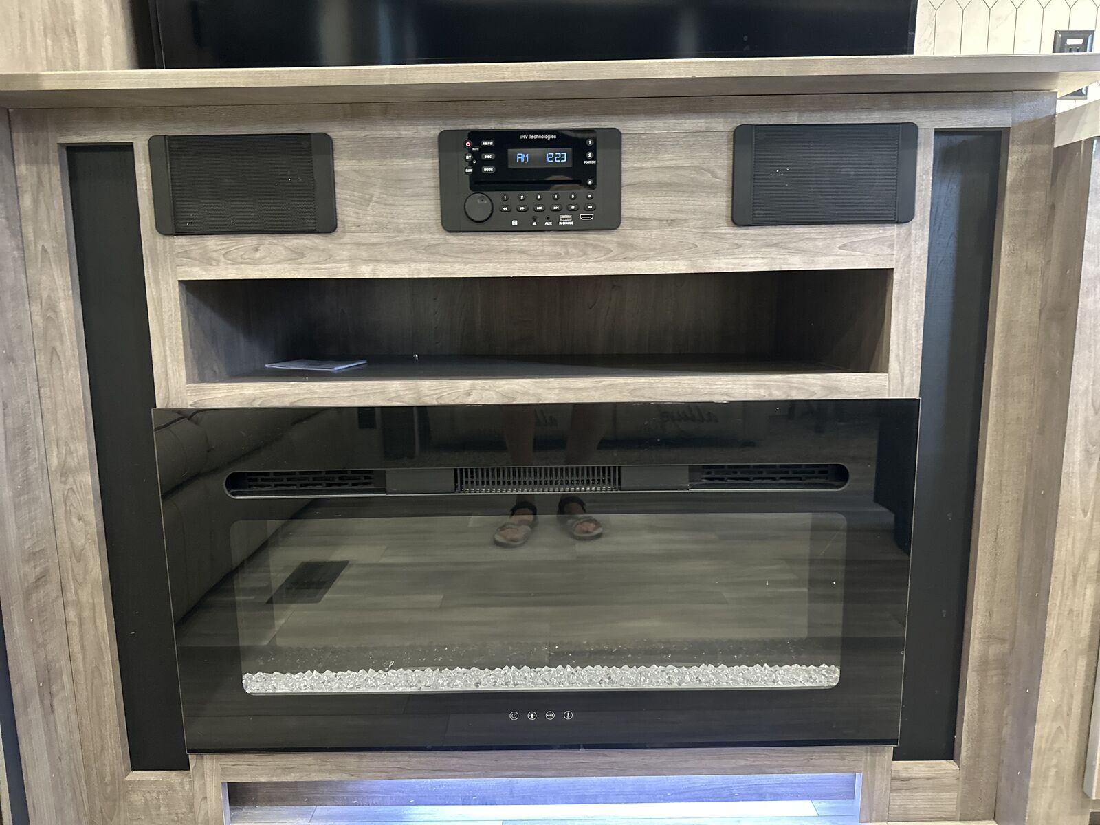 55” tv over the gas fireplace zone audio and radio
