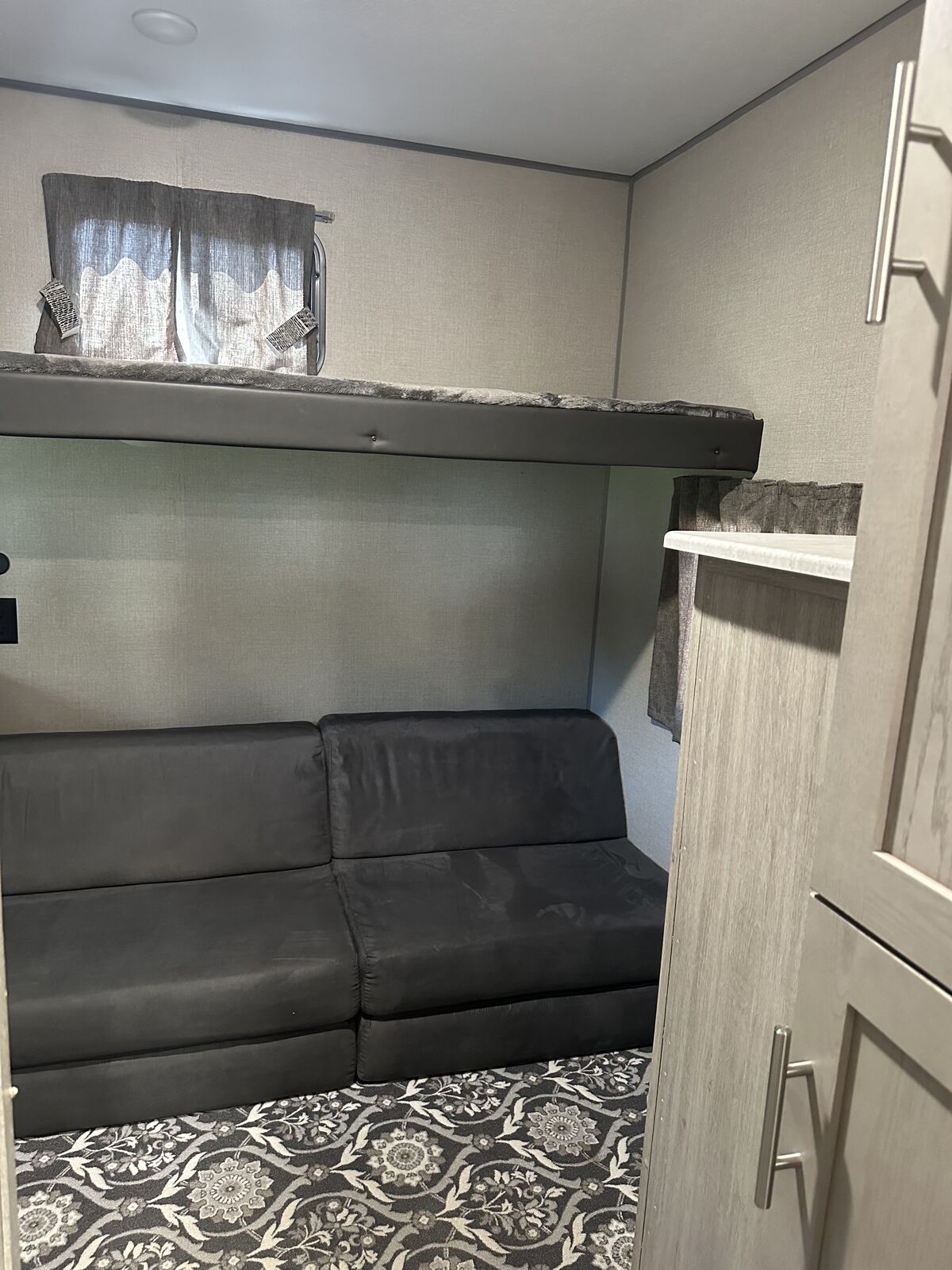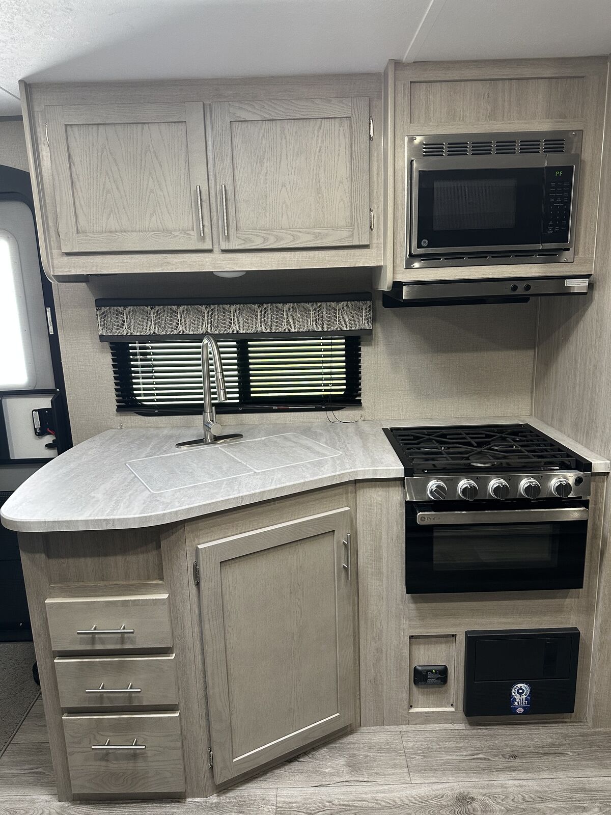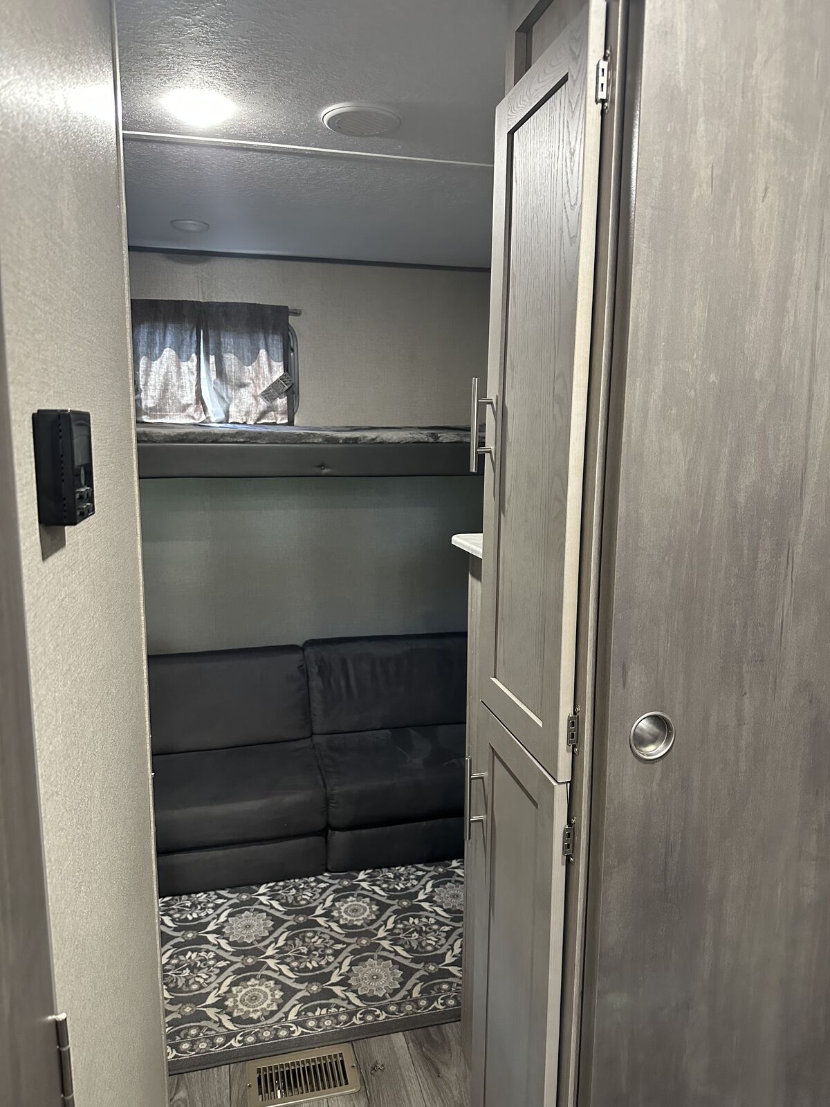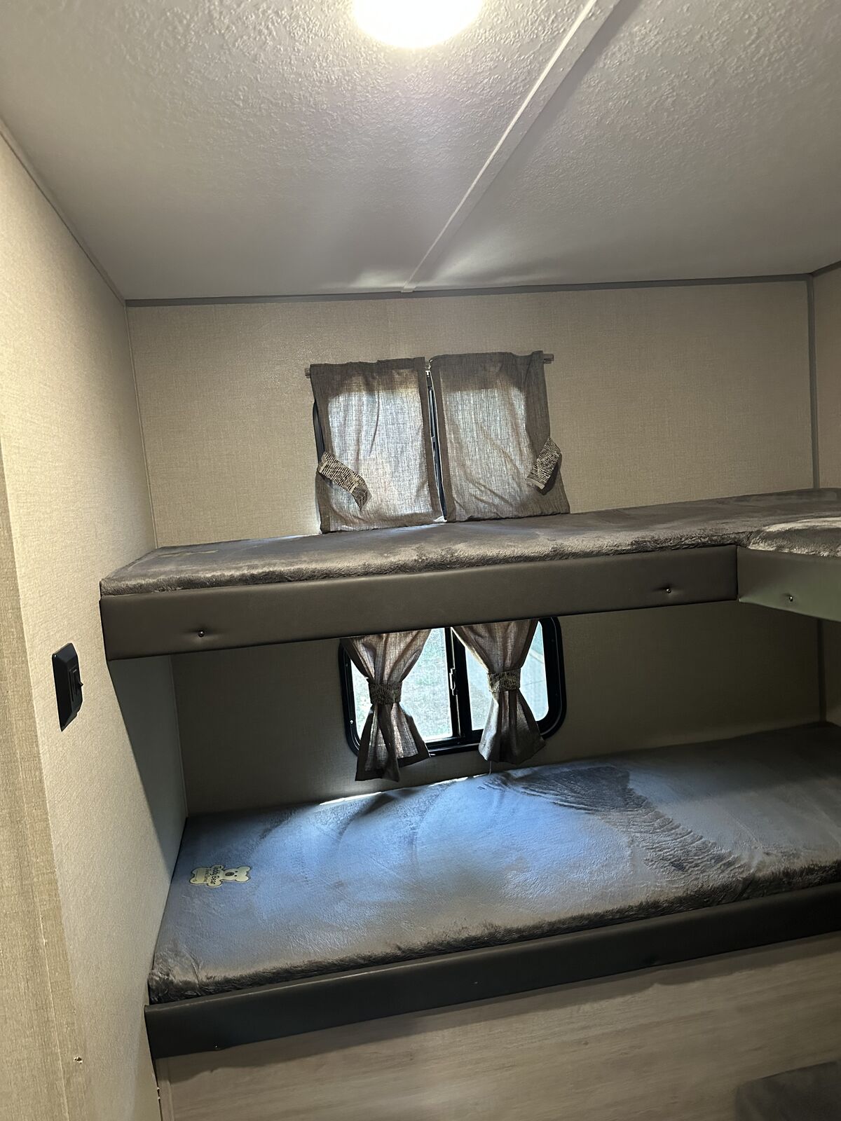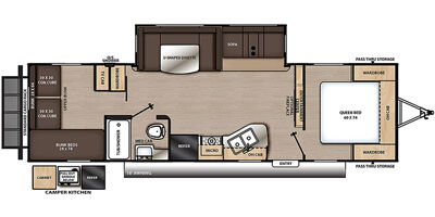 Family-Friendly Vibes: The bunkhouse layout has a private bunkroom for the kids, a comfy king bed for parents, and a U-shaped dinette for family meals or game nights. A 14' slide-out gives you extra space to chill! Outdoor Fun Zone: Cook up tasty meals in the outdoor camper kitchen with a fridge, gas griddle, and storage. Relax under the 18' awning, rinse off with the outdoor shower, or haul gear on the flip-down cargo rack. Cozy & Connected: Jam out with the Premium JBL Audio system, watch movies on the VIZIO 43 4K UHD HDR LED Smart TV*, or cozy up by the electric fireplace. The General Electric Appliance Package and Tri-Fold Sofa add homey comfort, and the WiFi Booster/Router keeps you online. Ready for Anywhere: Power up with a 200W rooftop solar package (30A controller), two 12V 100Ah LiFePO4 lithium batteries (640Wh Grade A Cells), and a Cummins Onan P4500i generator included*. Camp off-grid with ease! Smooth & Easy Travel: Roll on aluminum wheels with a spare tire and carrier, set up with scissor jacks, and connect easily with the stabilizer hitch/bars and Electric Tongue Jack w/Cover. Thermopane windows keep it comfy, and a skylight in the shower adds more head room and a touch of luxury.