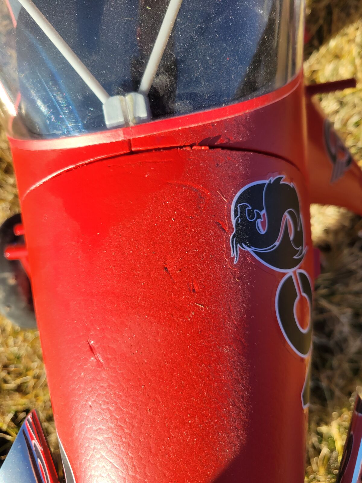 you can see a little damage. i flew this twice had a single hard landing and that is when i decided that flying a 650 dollar plane with a 100 dollar + battery was to much for me. i took pics of the minor damage.