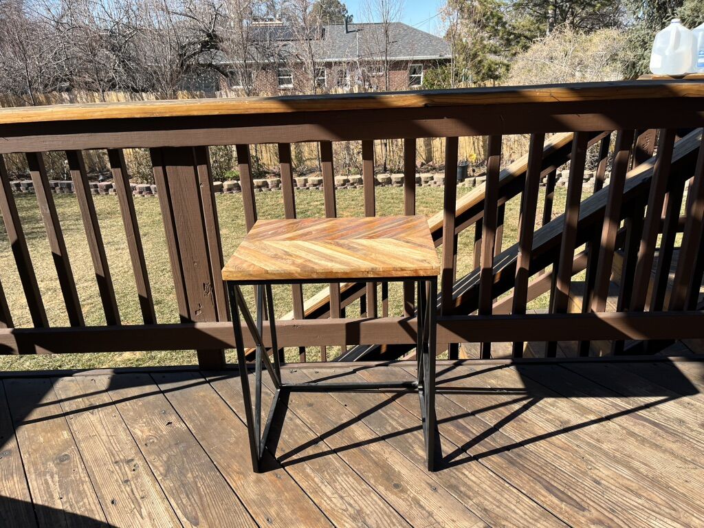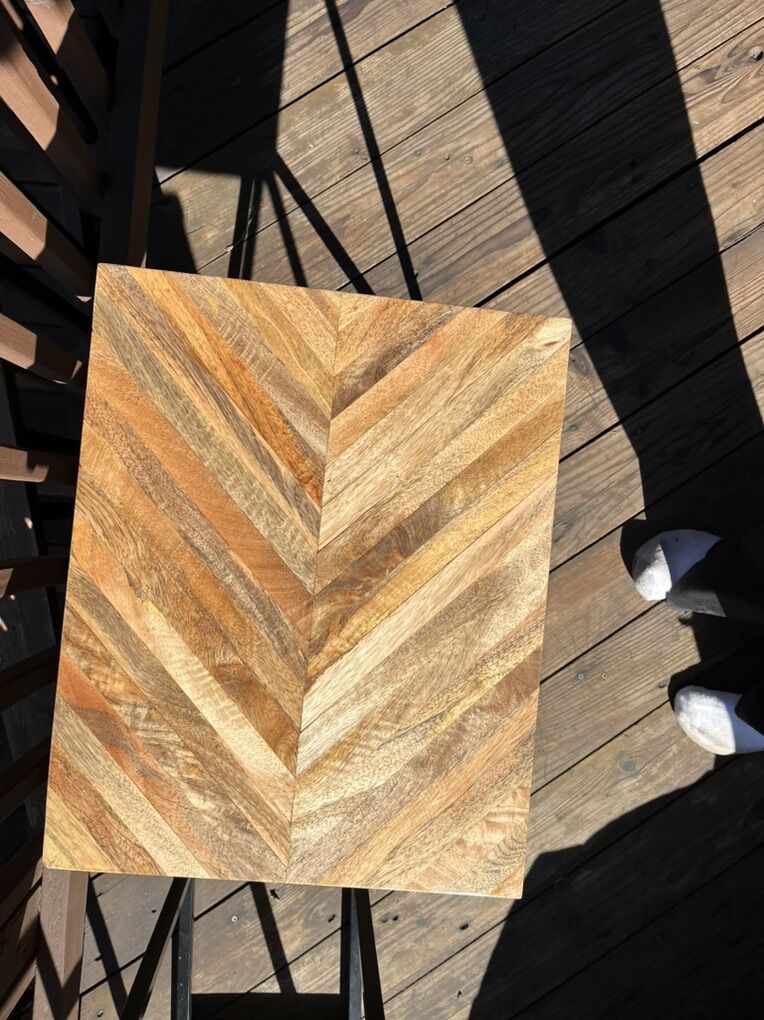 Wood and metal table measuring approximately 19 1/2 “length 15 3/4 “ width .
