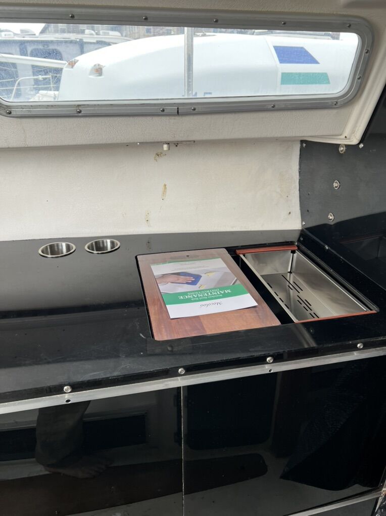All new double sink, full size and deep with automatic pump, cup holders, acrylic 50 year plexi that is marine proof with all stainless steels new hardware. New installed tinted windows, sealed.