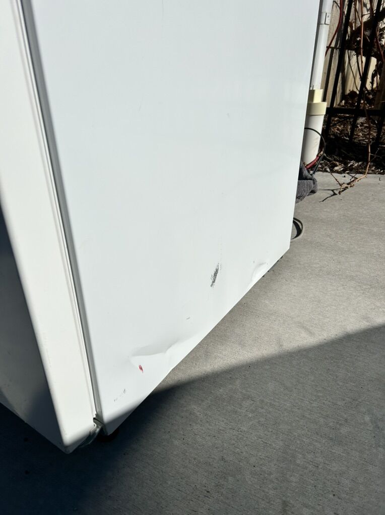 Has some exterior damage on the right bottom side (see pictures). Does not affect how it functions at all.